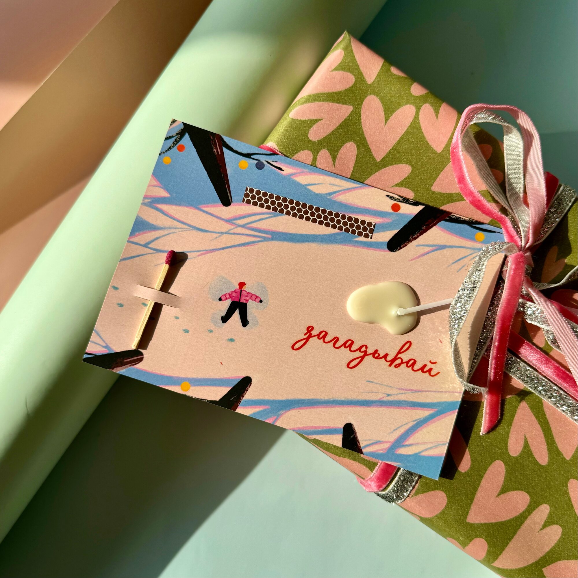 Открытка свечка "Загадай", от Вьюнчик, 14,8х10,5 см (А6), стильная поздравительная открытка на день рождения