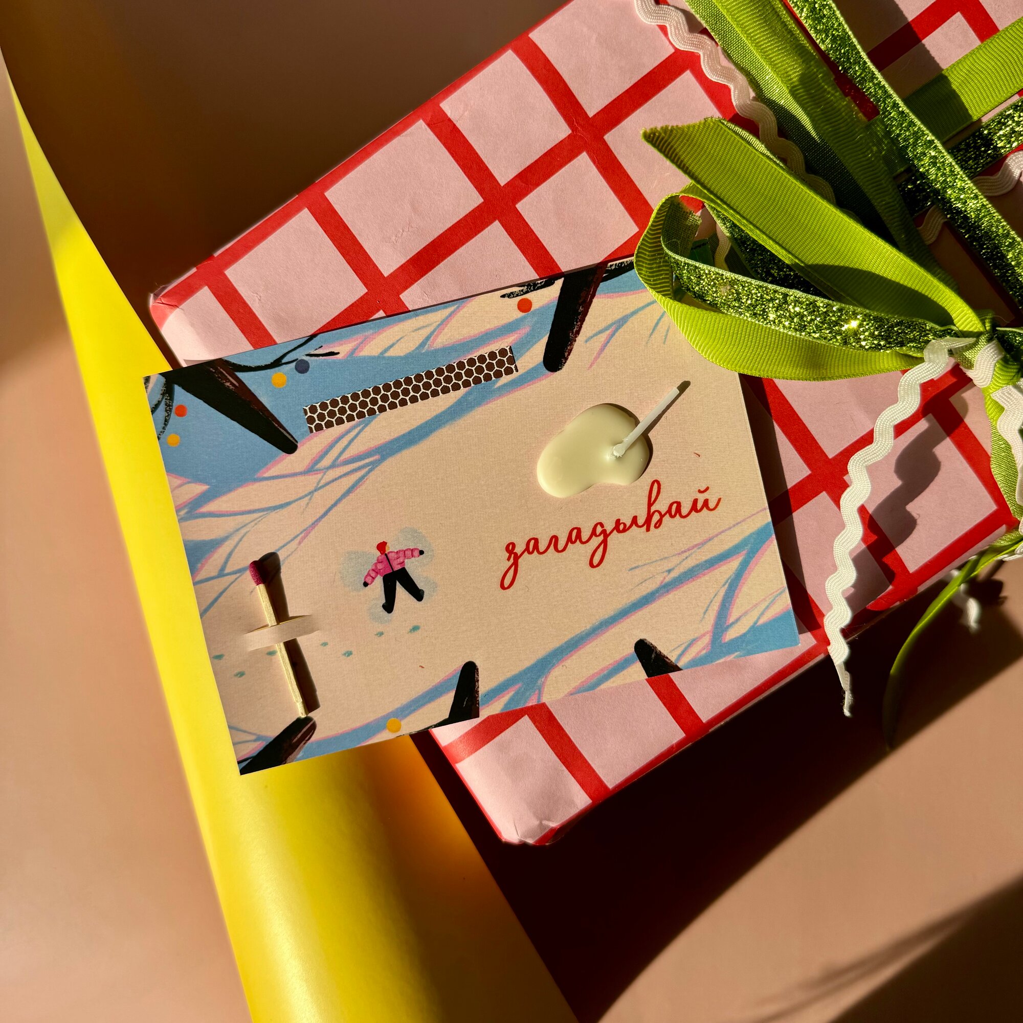 Открытка свечка "Загадай", от Вьюнчик, с крафтовым конвертом, 14,8х10,5 см (А6), открытка для загадывания желаний