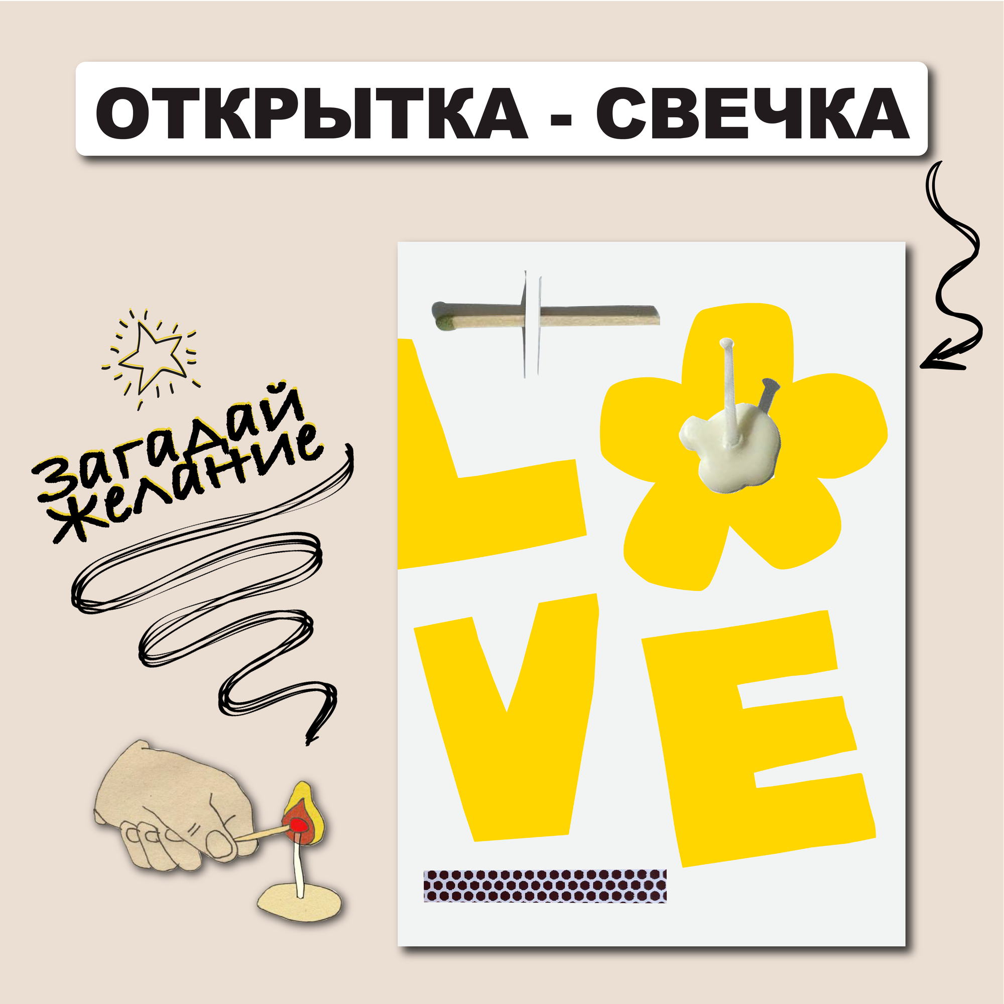 Купить Открытка свечка о любви "Love", от Вьюнчик, 14,8х10,5 см (А6), стильная поздравительная открытка любимой, открытка любимому