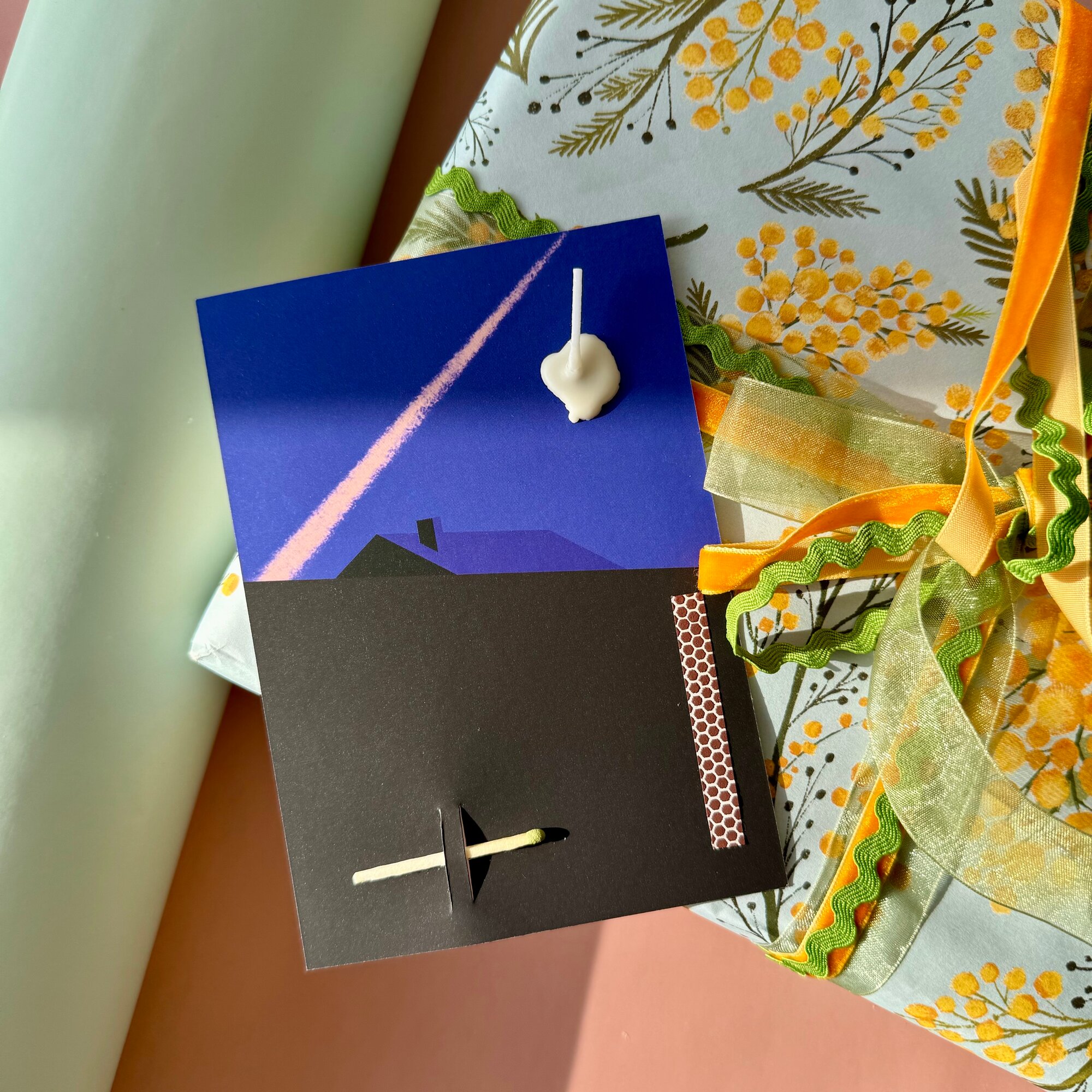 Купить Открытка свечка "Падающая звезда", от Вьюнчик, 14,8х10,5 см (А6), стильная поздравительная открытка на день рождения
