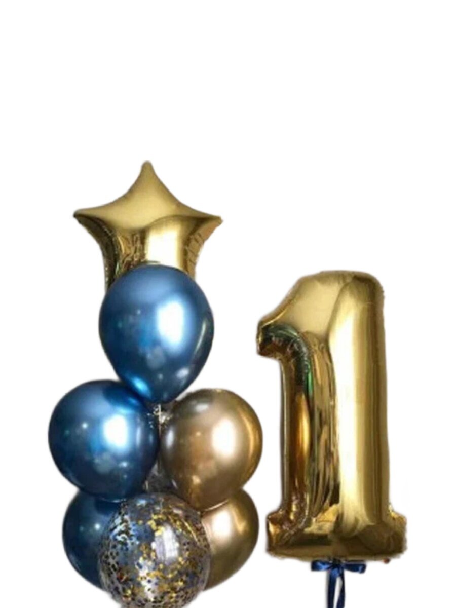 Набор воздушных шаров с цифрой 1 на годик для мальчика 5шт