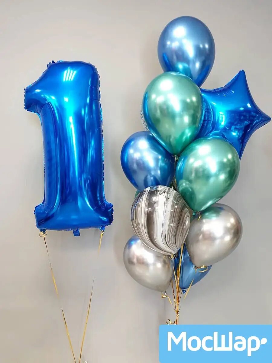 Набор воздушных шаров с цифрой 1 на годик для мальчика 5шт