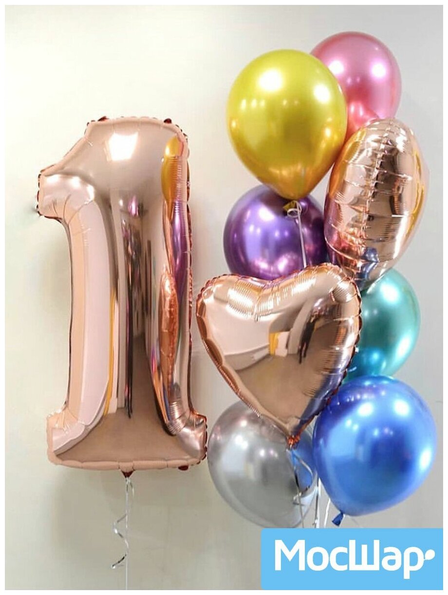 Набор воздушных шаров МосШар, цифра 1, хром, 11 штук