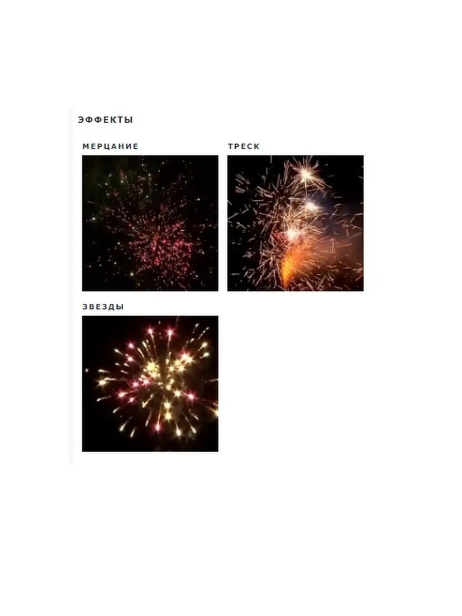 | Особенности фейерверка | вращающийся / высотный / красочная концовка / парковый |