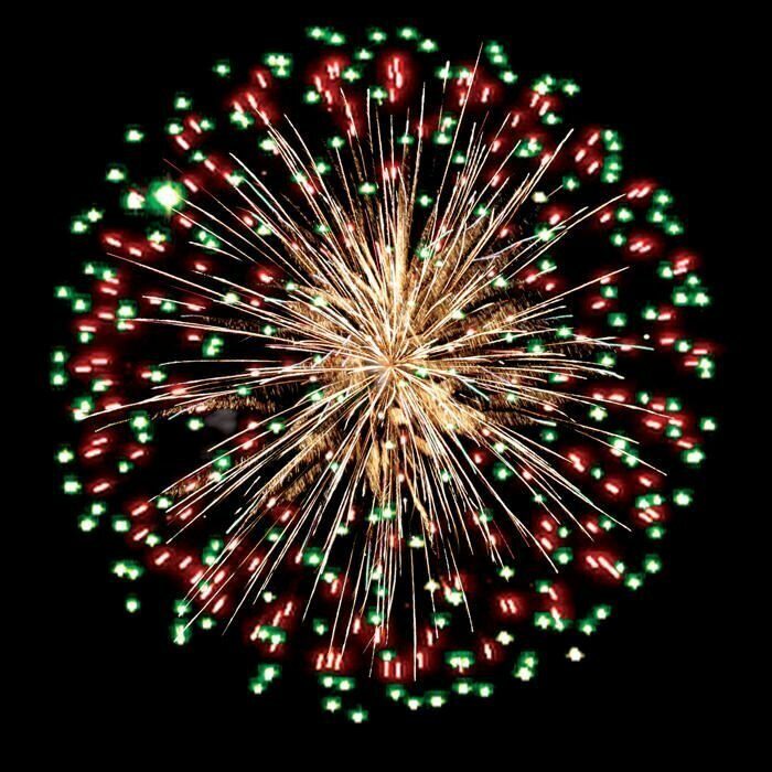 | Эффекты | Эффекты: 1. Красно-белая мерцающая сфера (пион). 2. Зеленая сфера (пион) и треск. 3. Зелено-фиолетовая сфера (пион). 4. Синяя сфера (пион) и трещащие разрывы (трещащий дождь). |