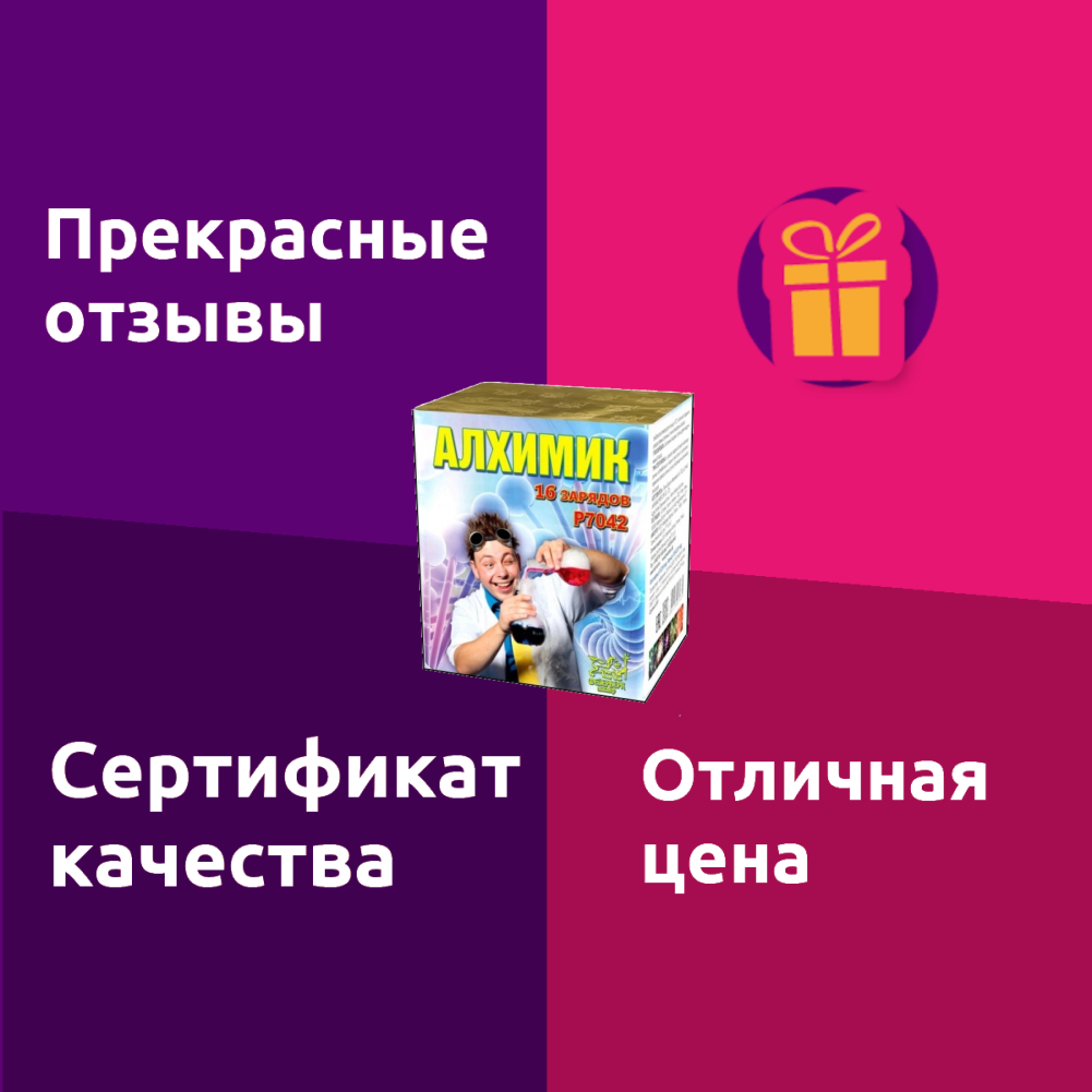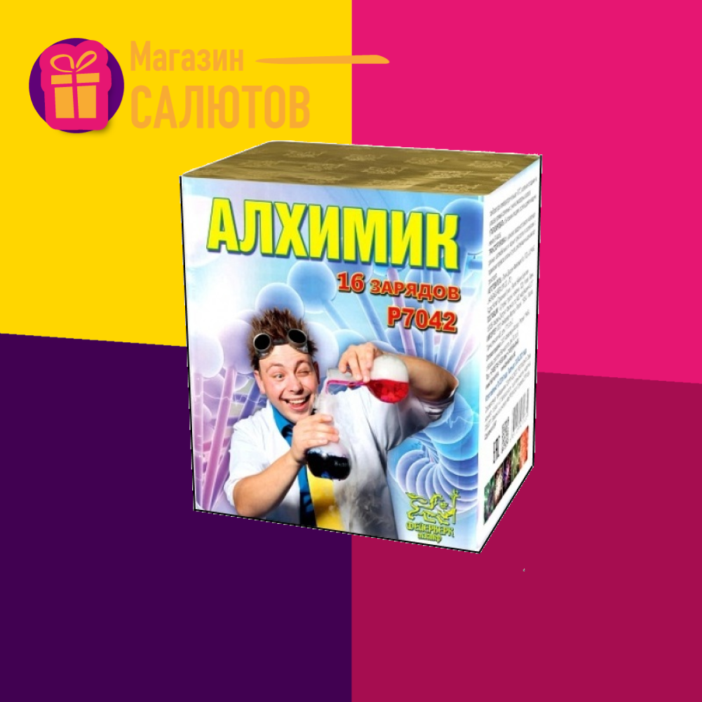 Батарея салютов P7042 «Алхимик» (1" x 16 залпов) + в подарок бенгальские огни