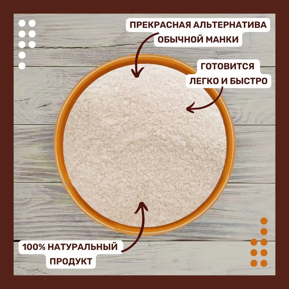 | Способ приготовления | 500 мл жидкости (вода / молоко) довести до кипения. осторожно всыпать / помешивая / 60-80 г крупы. Варить до загустения. Добавить щепотку соли / сахар по вкусу. Заправить маслом / украсить свежими фруктами или вареньем. |