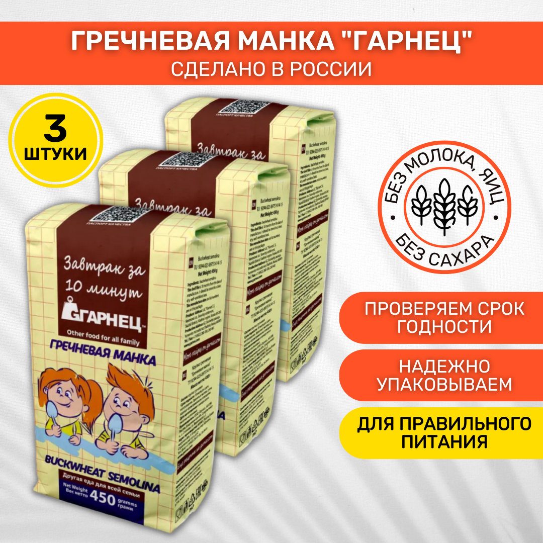 Крупка Гарнец Гречневая манка без глютена, 3 шт по 450 гр, Garnec