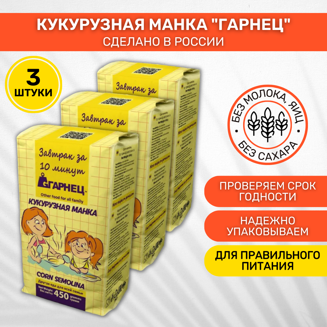 Крупка Гарнец Кукурузная манка без глютена, 3 шт по 450 гр, Garnec