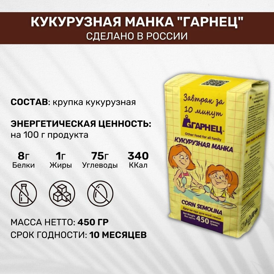 СохранитьКрупка Garnec Гарнец Кукурузная манка 3 шт по 450г интересное: