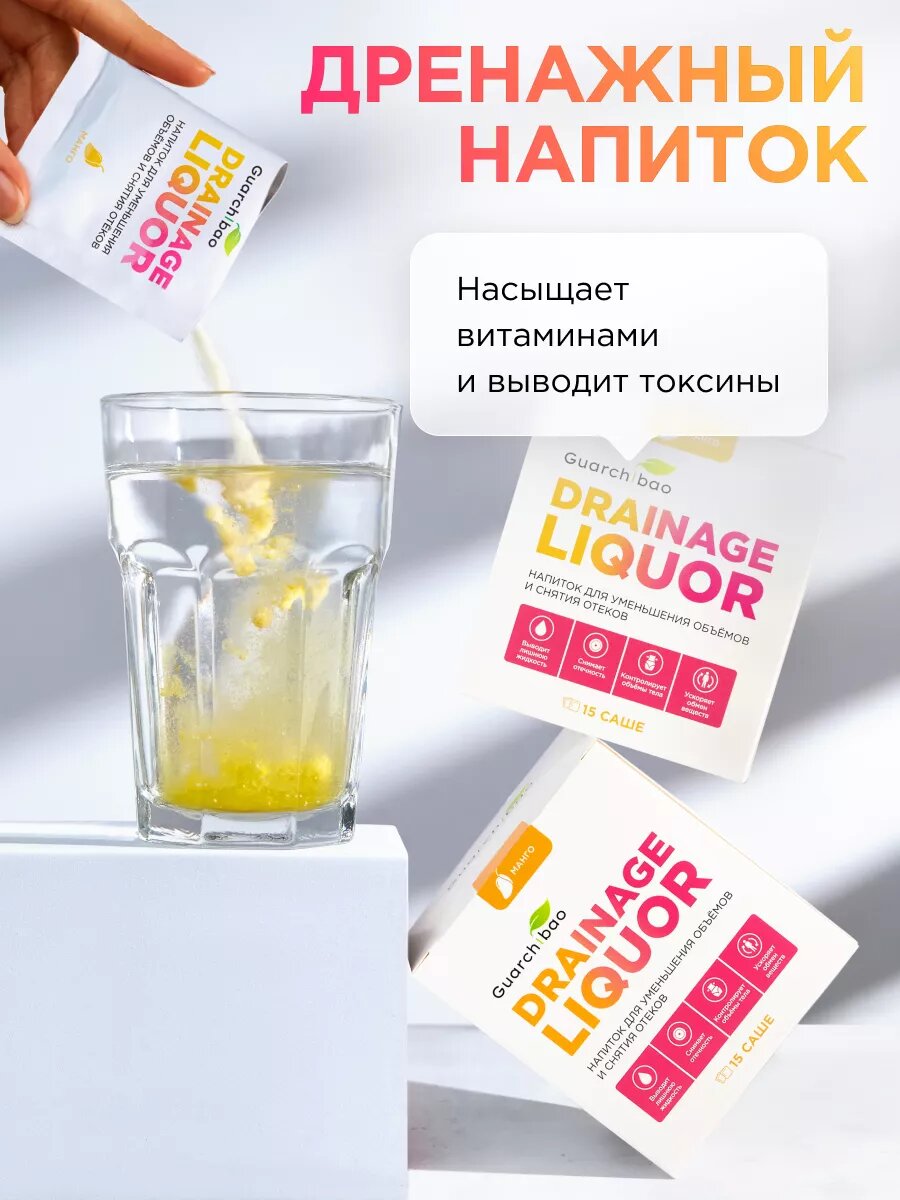 Дренажный напиток Guarchibao Drainage Liquor со вкусом Манго для снятия отеков и уменьшения объемов, для похудения, 1 упаковка (15 саше)