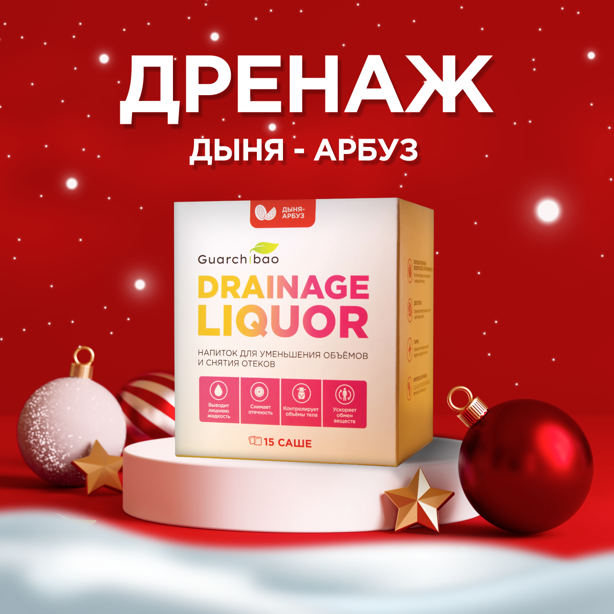 Дренажный напиток Guarchibao Drainage Liquor со вкусом Арбуза и Дыни для снятия отеков и уменьшения объемов, для похудения, 1 упаковка (15 саше)