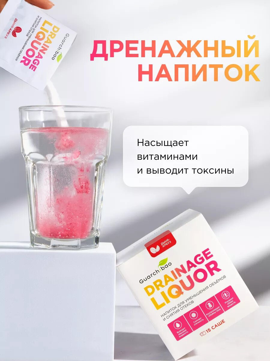 Дренажный напиток Guarchibao Drainage Liquor со вкусом Грейпфрута для снятия отеков и уменьшения объемов, для похудения, 1 упаковка (15 порций)