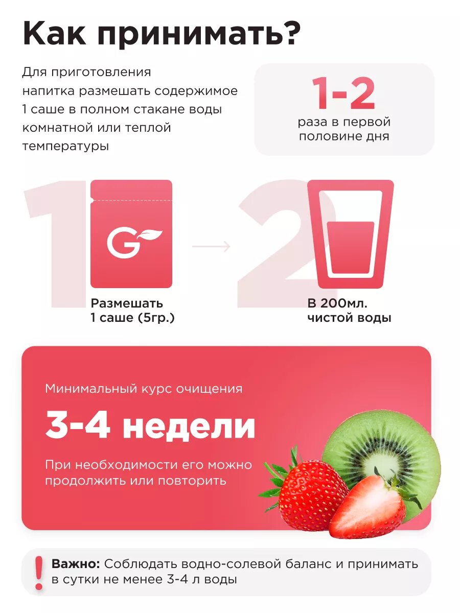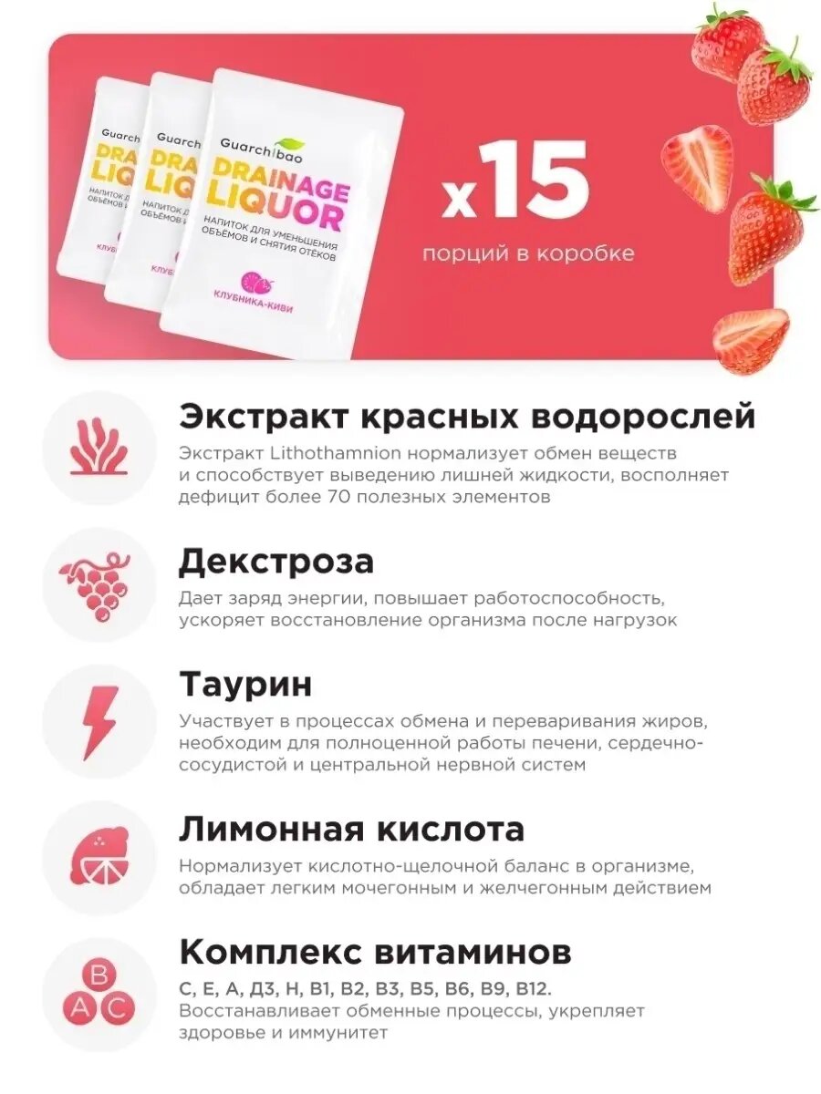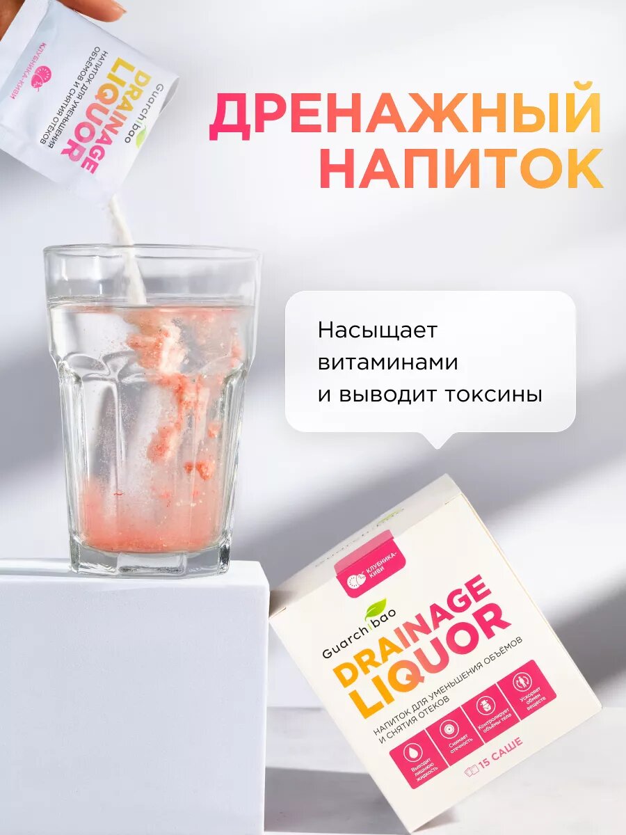 Дренажный напиток Guarchibao Drainage Liquor со вкусом Клубника-Киви для снятия отеков и уменьшения объемов, для похудения, 1 упаковка (15 саше)