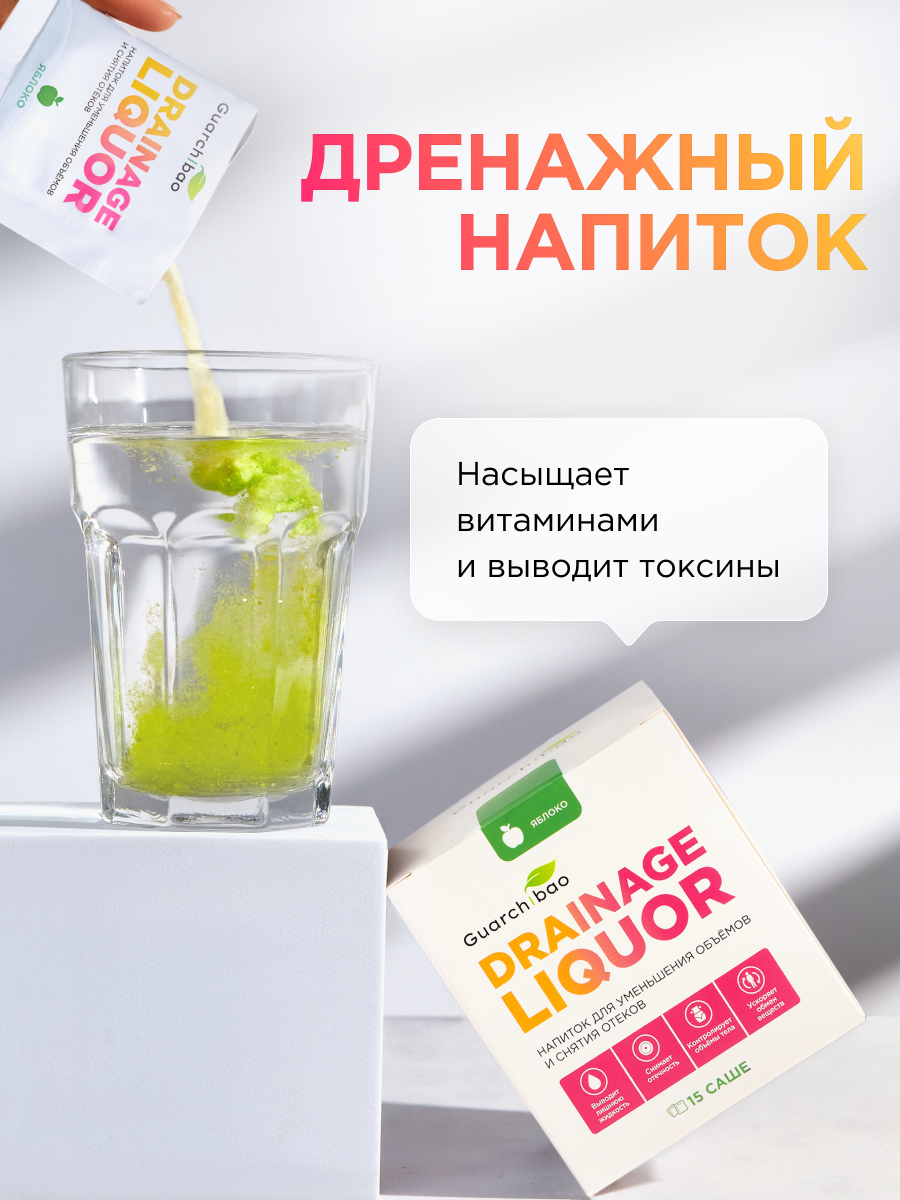 Дренажный напиток Guarchibao Drainage Liquor со вкусом Груши для снятия отеков и уменьшения объемов, для похудения, 1 упаковка (15 саше)