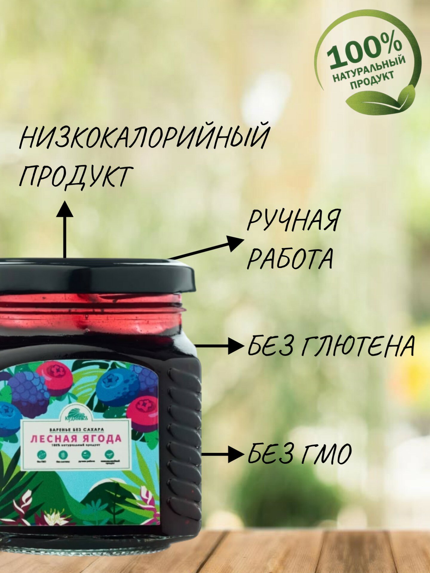 Купить Варенье без сахара Лесная ягода, Кудесникъ, 2 штуки по 300 грамм