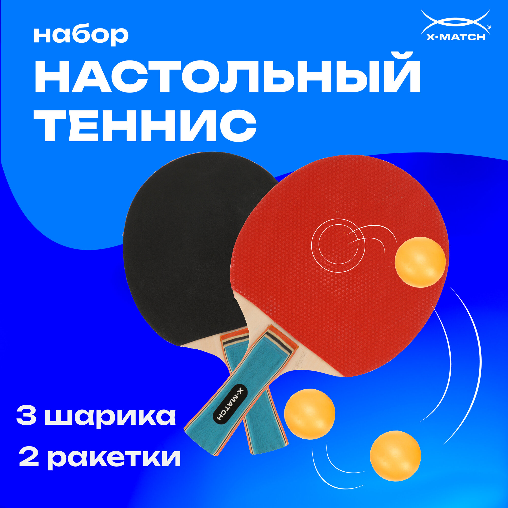Набор для настольного тенниса X-Match, в чехле, 2 ракетки и 2 мяча