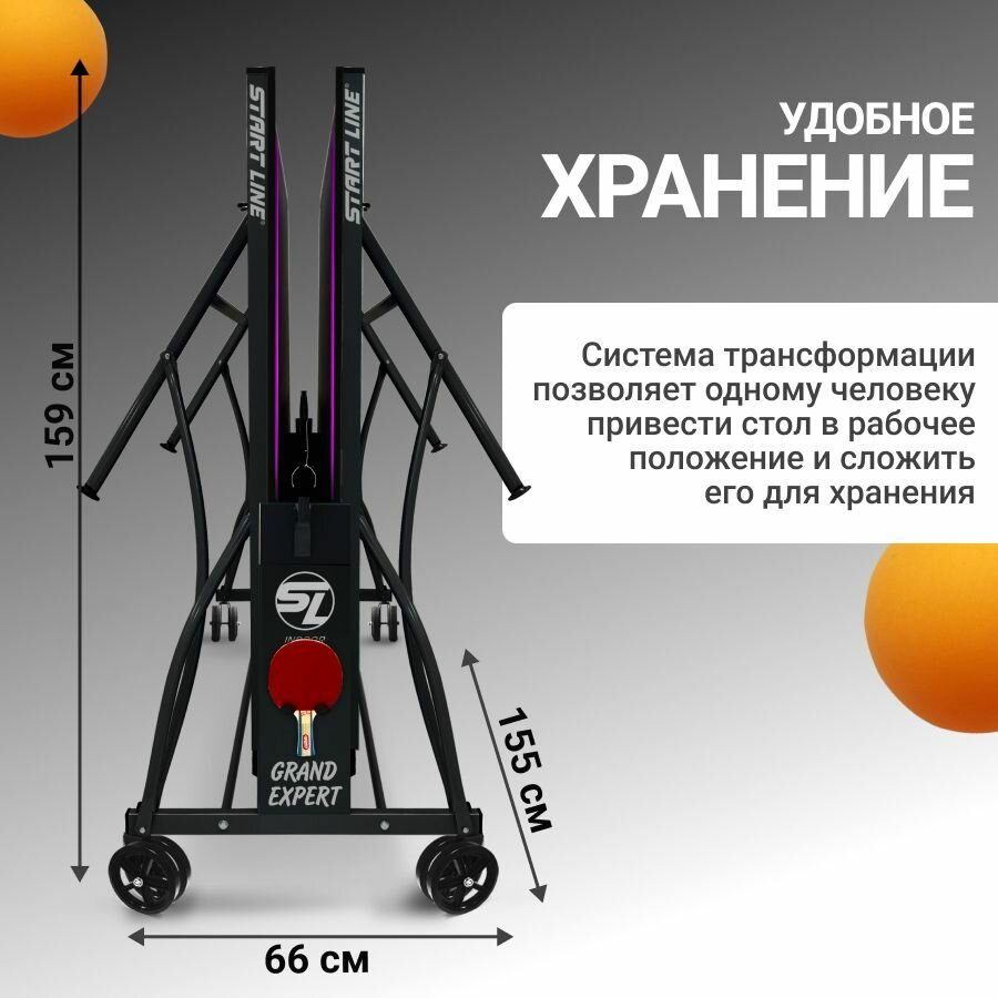 Теннисный стол Стол теннисный GRAND EXPERT черный, для помещений, для дома, складной с колесами интересное: