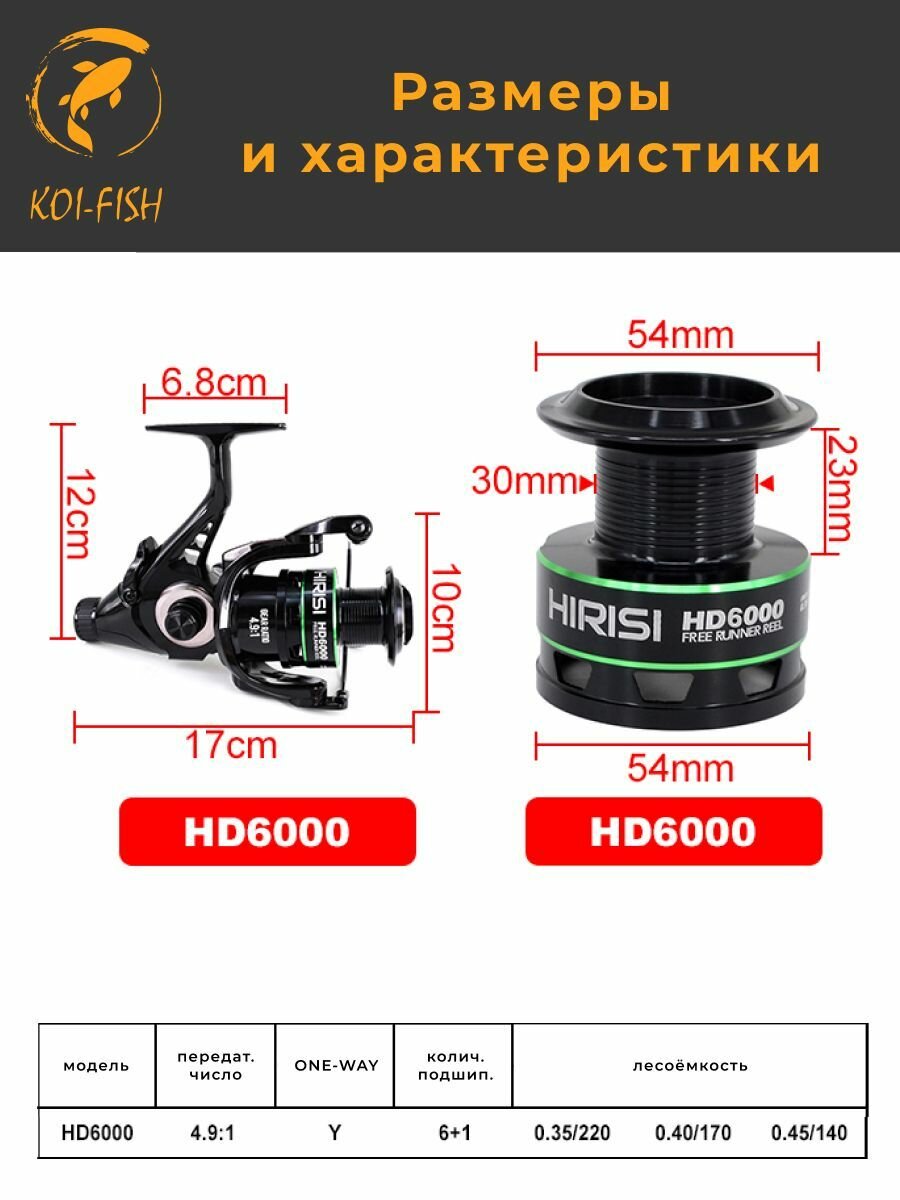 Катушка для рыбалки безынерционная рыболовная Hirisi HD 6000