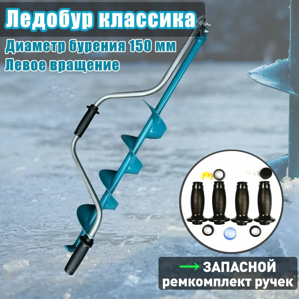Ледобур двуручный классический D150 L цельнотянутый шнек + запасной ремкомплект ручек