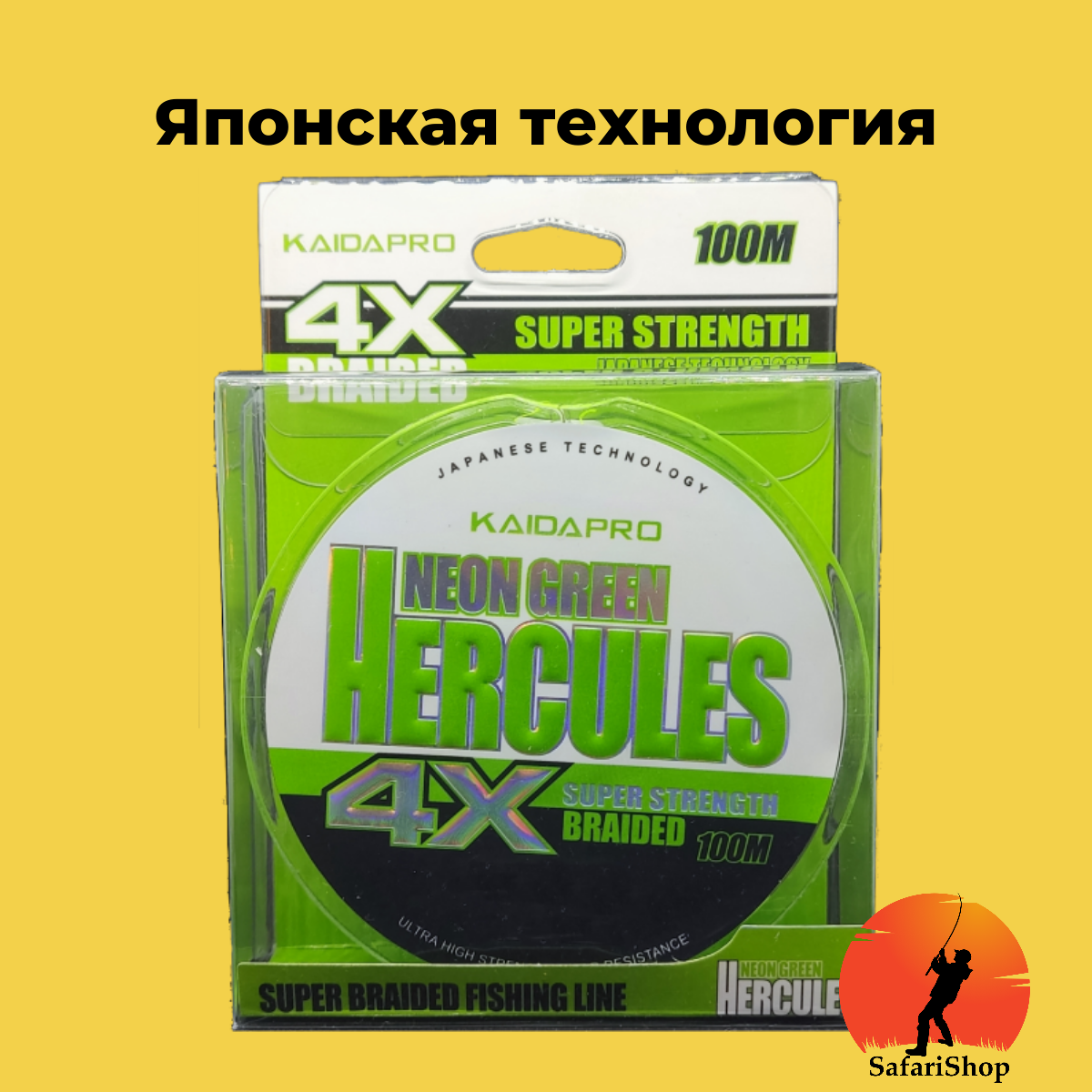 Плетенный шнур для рыбалки KAIDA PRO HERCULES Neon Green 4X 0.18 мм 100м