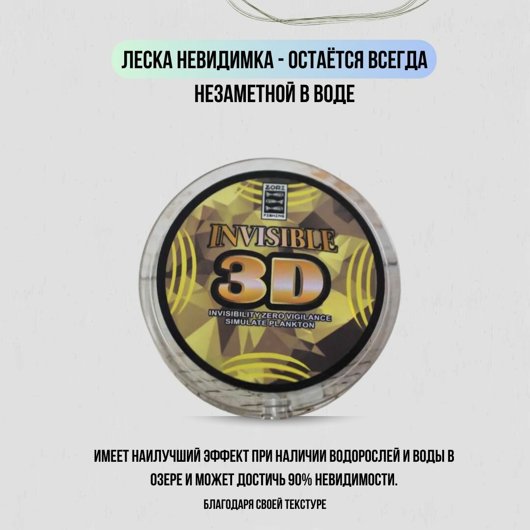Леска Камуфляжная Невидимая 3D Zori-Fish 0.30mm 17.6kg 100m.
