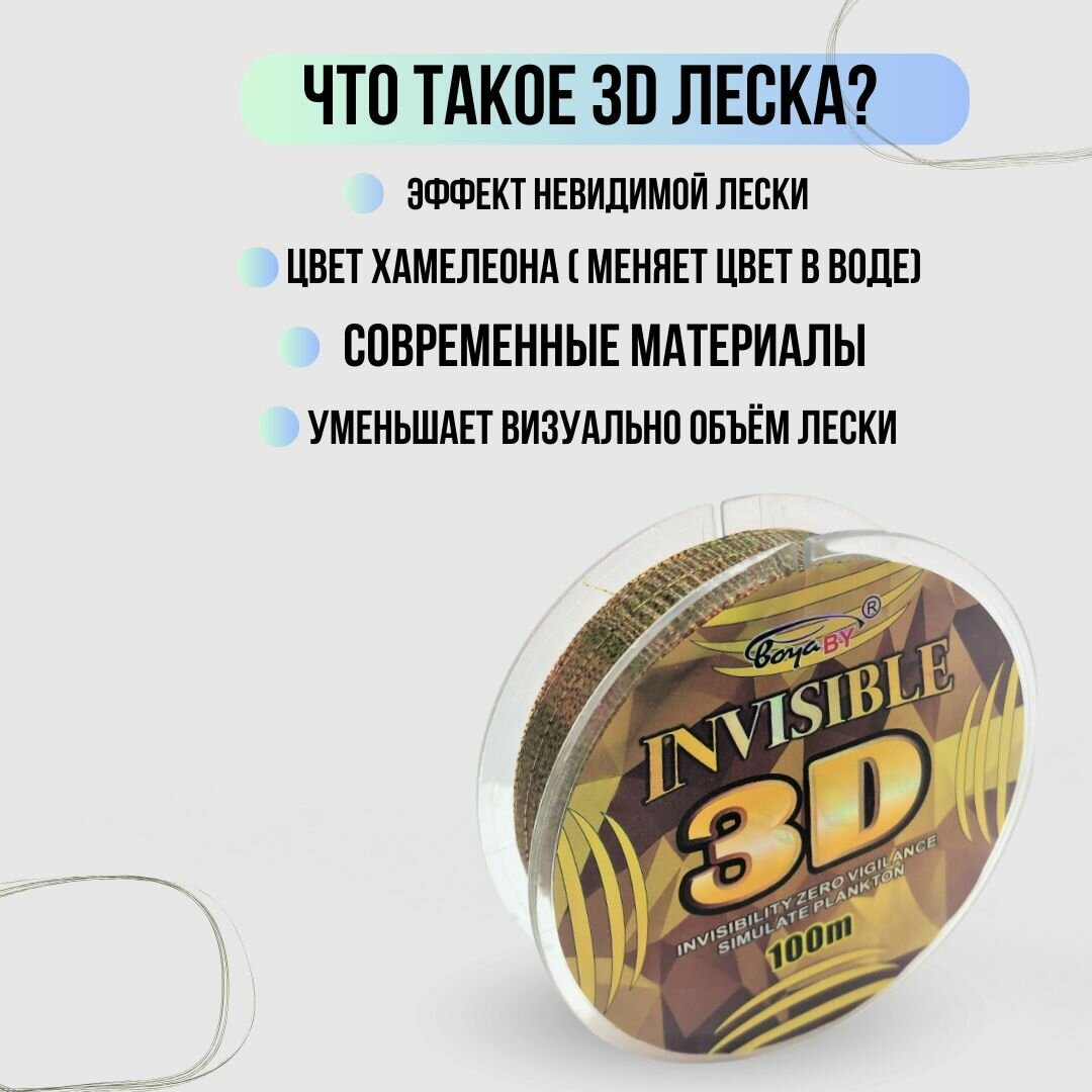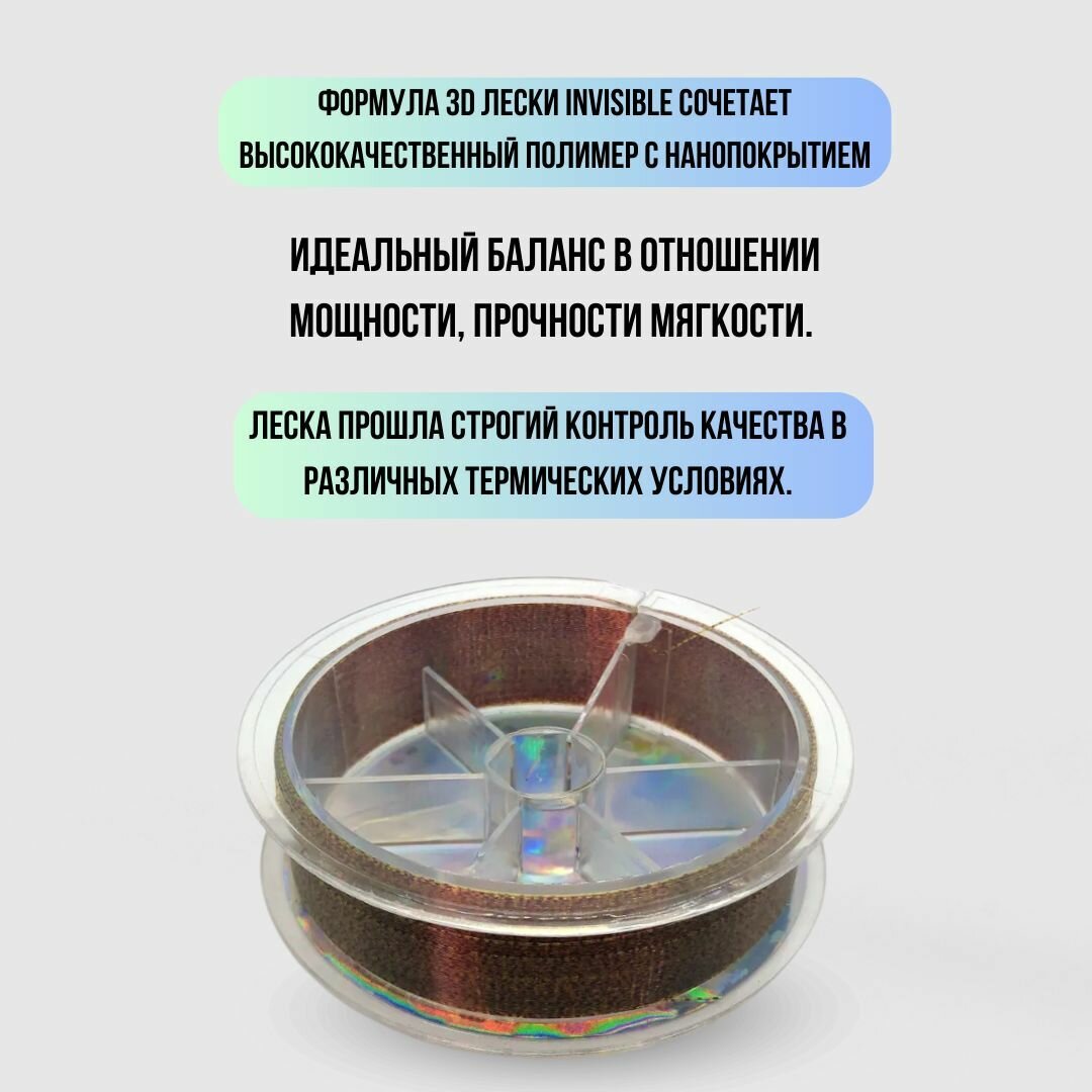 Леска Камуфляжная Невидимая 3D Zori-Fish 100м. 0.20мм 7.50 кг / Леска рыболовная