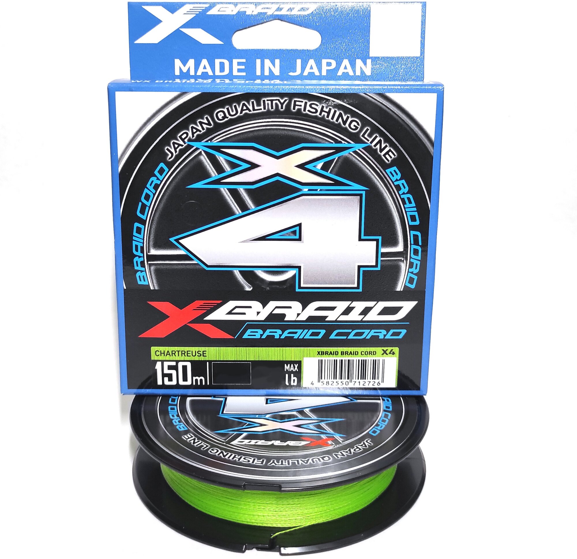 Шнур X-BRAID BRAID CORD X4 150m (col. Chart) #0.4 8 lb