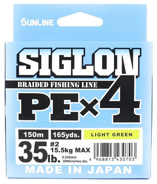 Шнур Sunline #0.8/12LB (light green) SIGLON PE×4 150M плетеный Япония оригинал