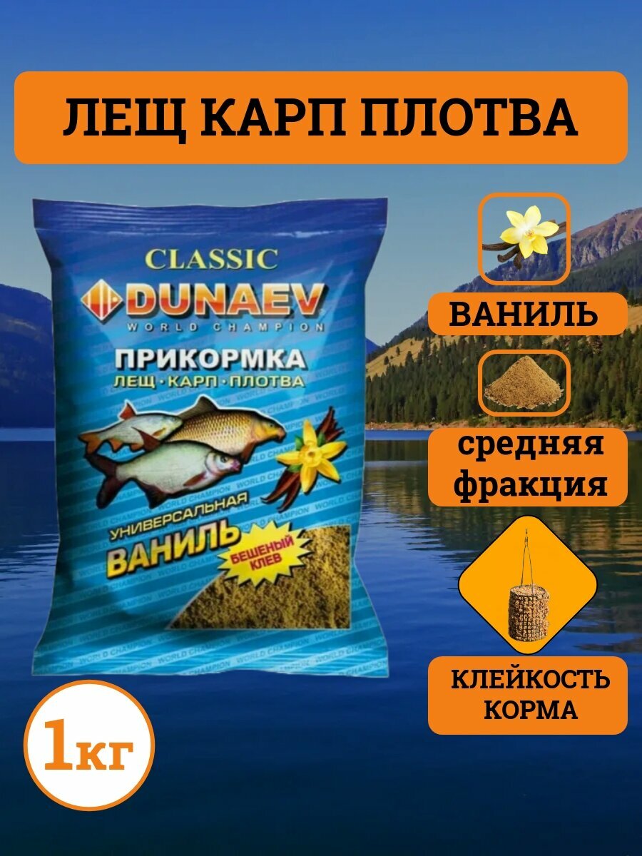 Купить Прикормка натуральная Дунаев "DUNAEV классика" 0.9кг / Ваниль