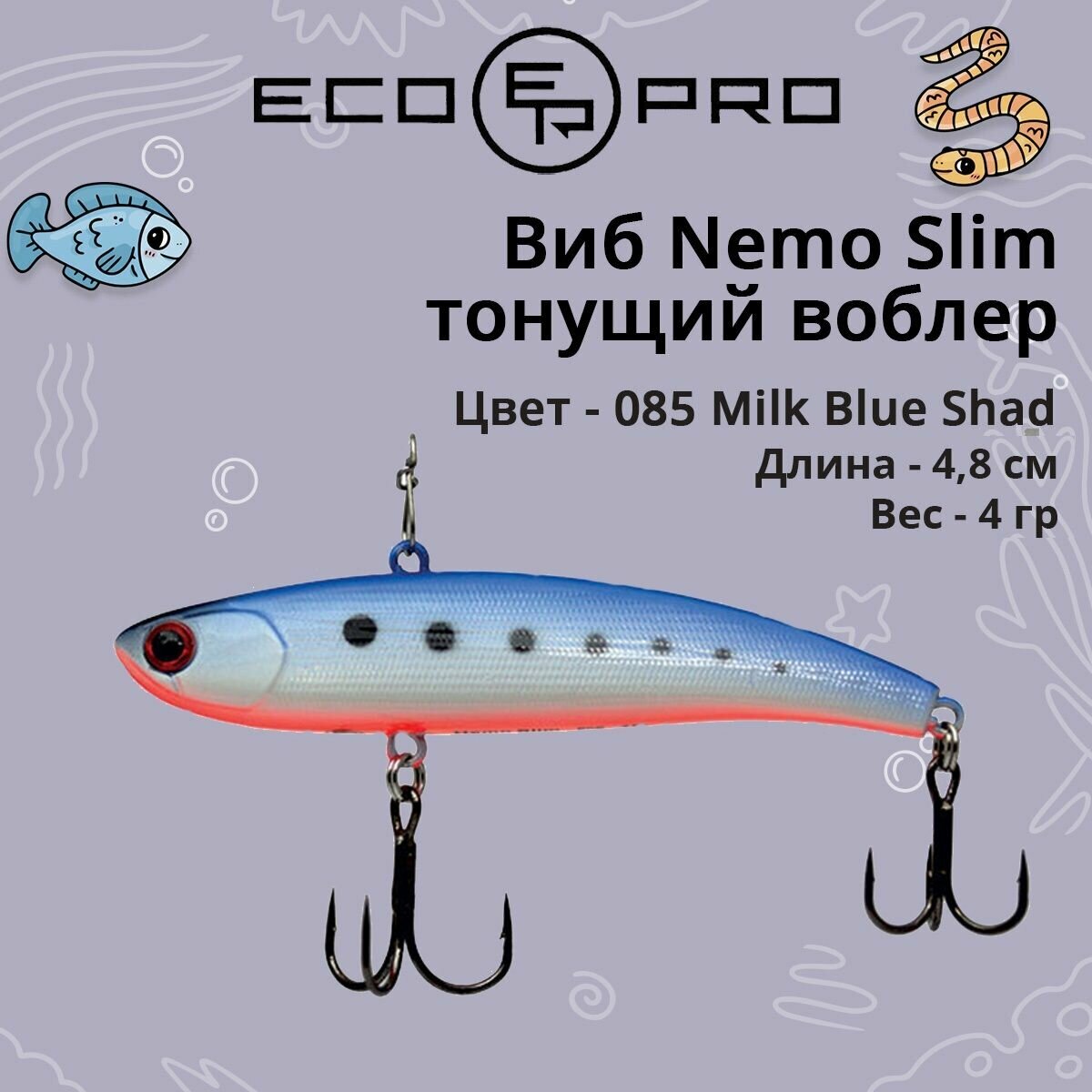 СохранитьРатлин для зимней рыбалки / Виб Ecopro Nemo Slim 48 мм 4 гр 085 Milk Blue Shad интересное: