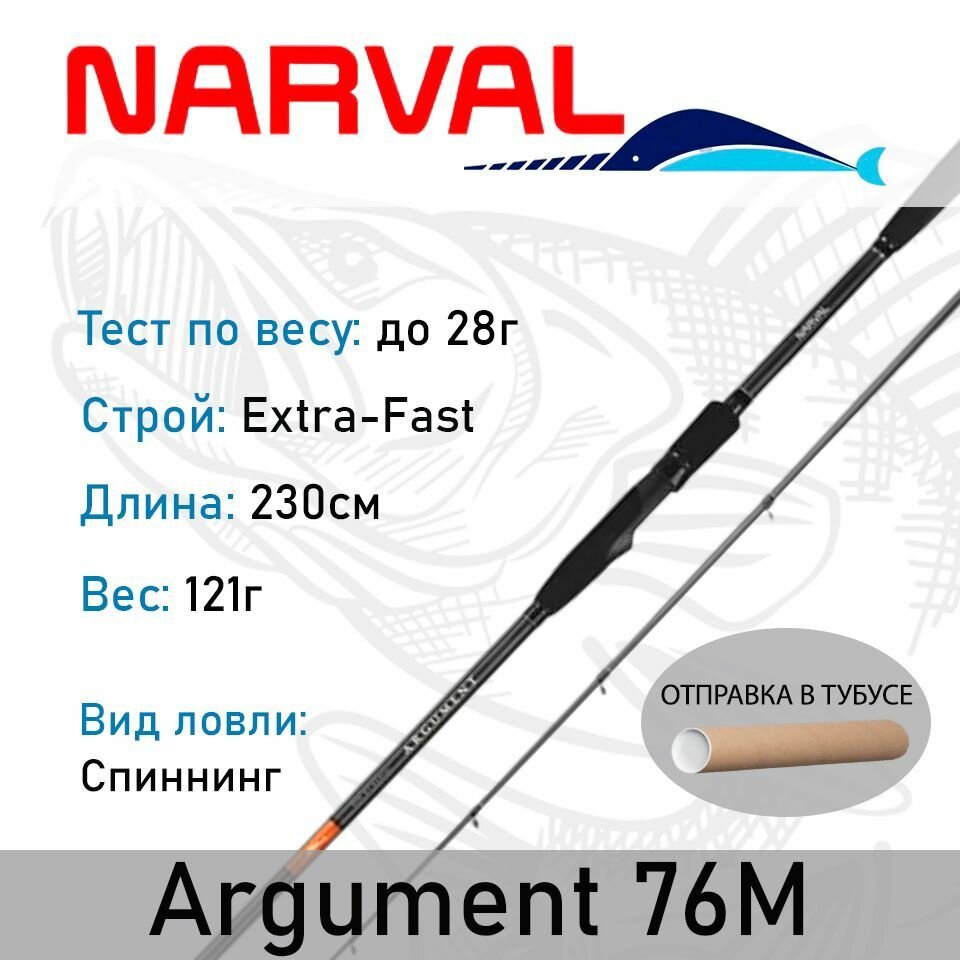 Спиннинг NARVAL "ARGUMENT" 76M длина 2,3 метра, тест до 28гр, класс средний, строй очень быстрый