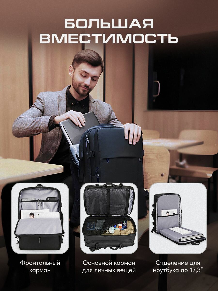 Рюкзак-сумка мужской городской дорожный Mark Ryden большой 37л, для ноутбука 17.3", водонепроницаемый, с USB, для взрослых и подростков, цвет черный