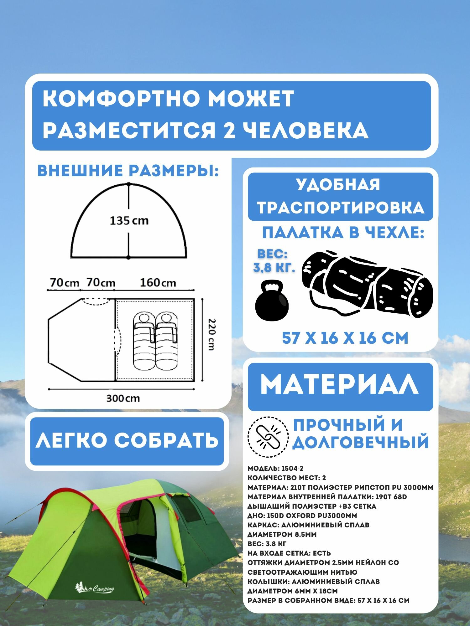 | Материал тента | 190Д Полиэстер |