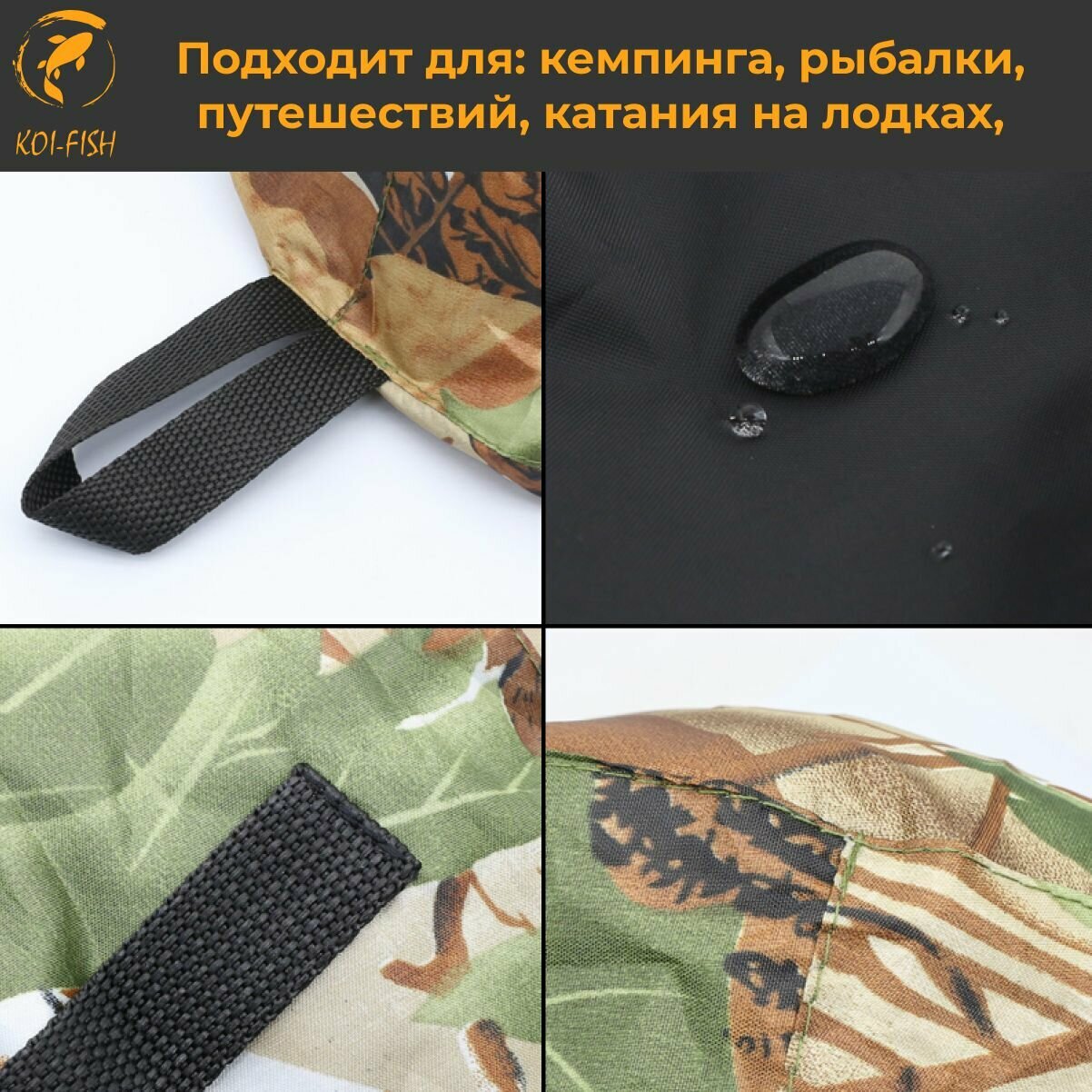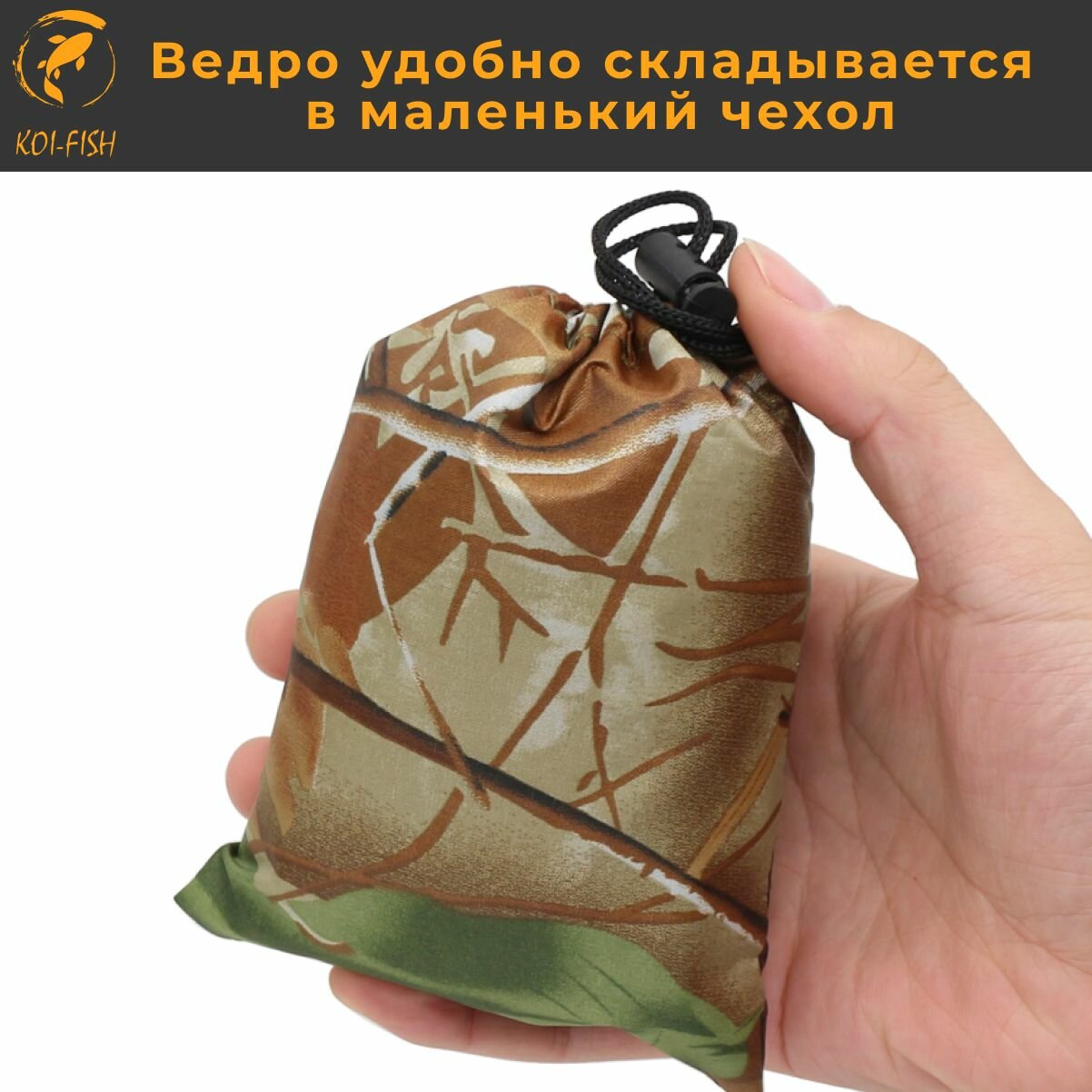 Переносное ведро KOI-FISH водонепроницаемое складное, камуфляж CAMO. туристическое походное для кемпинга интересное: