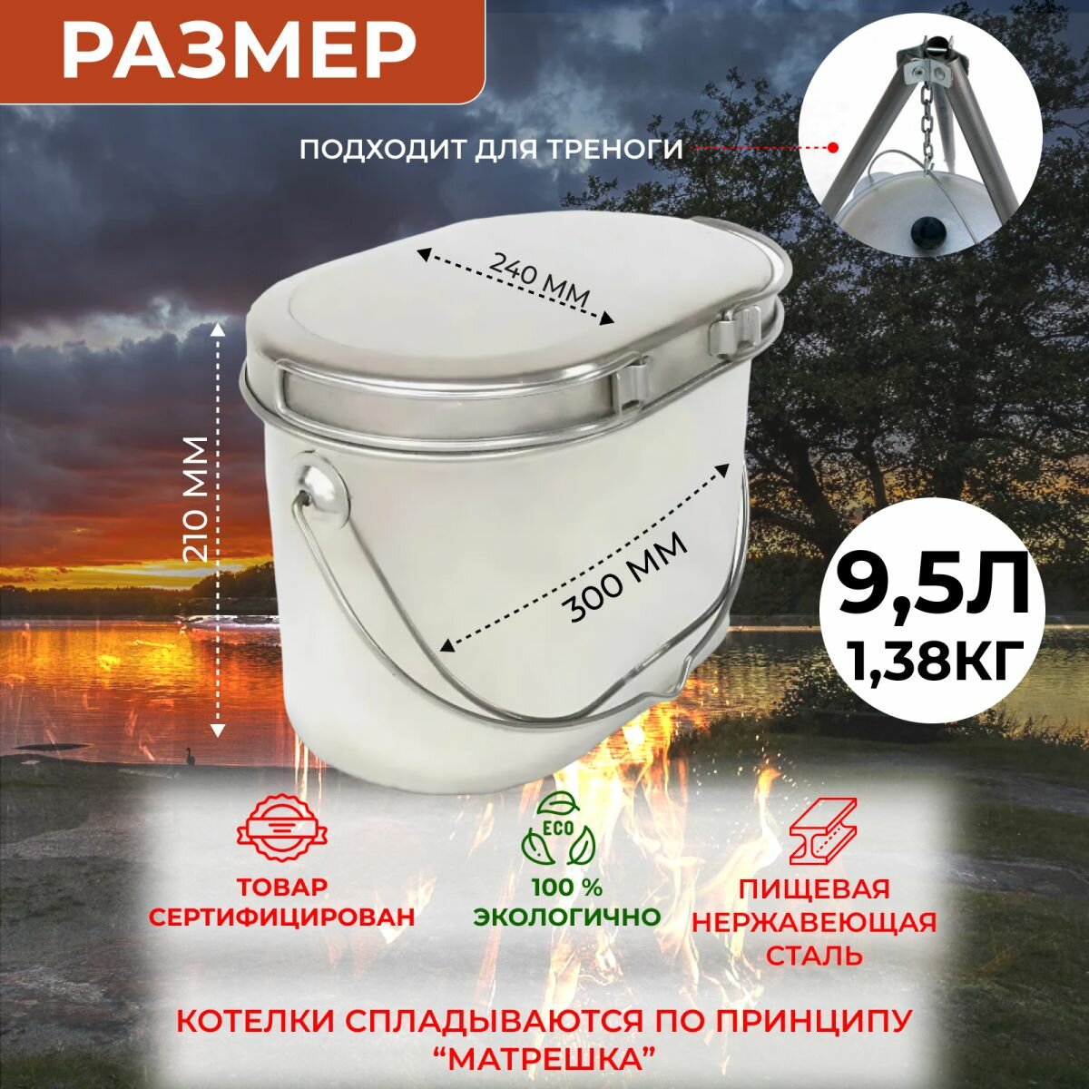 Купить Котелок походный туристический низкий 9,5л нерж Роза ветров