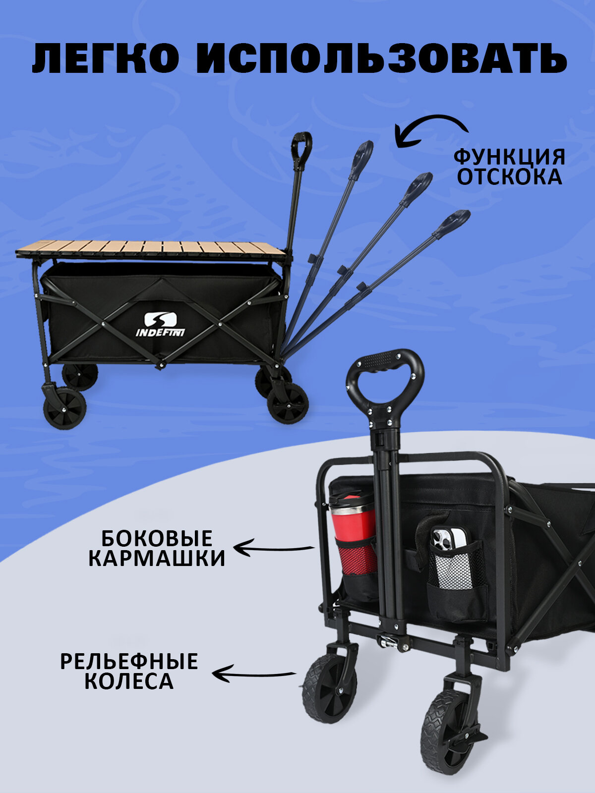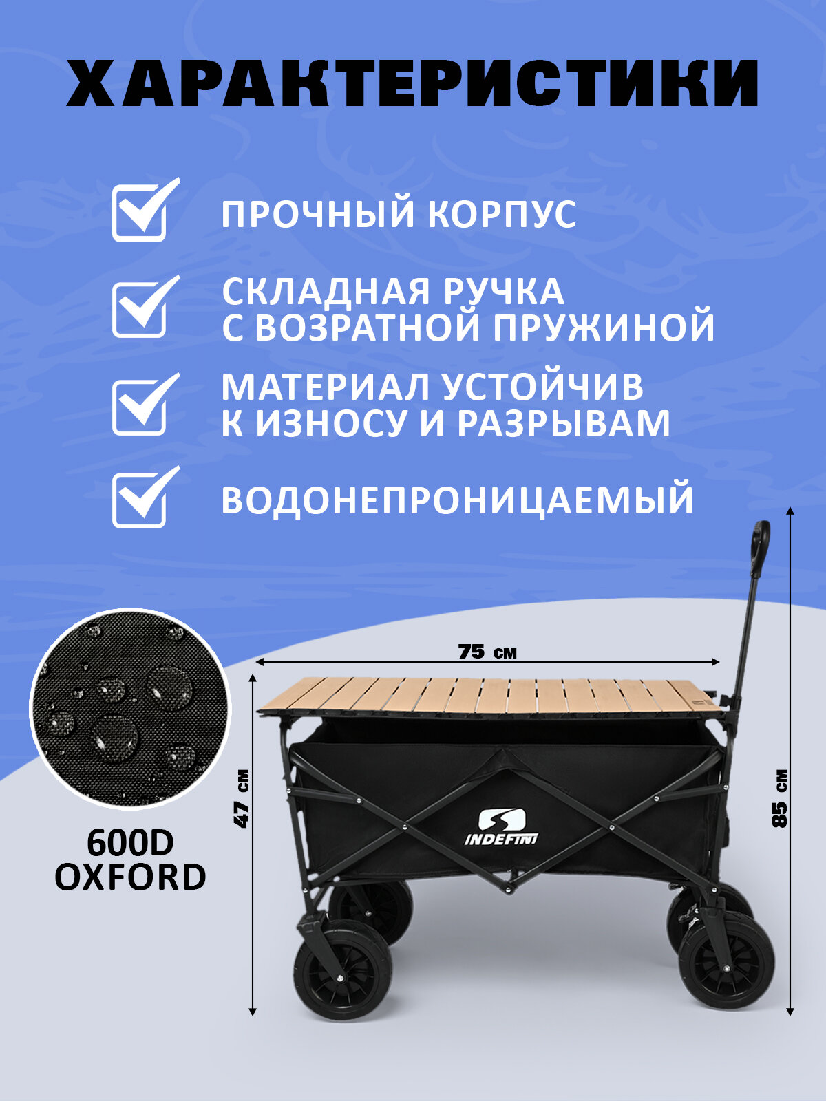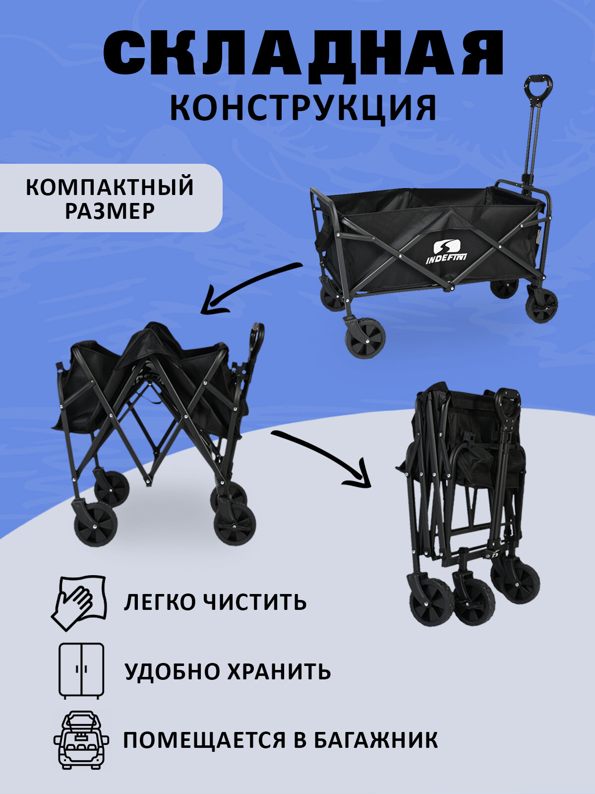 Туристическая тележка INDEFINI 3049WFT5, складная, максимальная нагрузка 60 кг интересное: