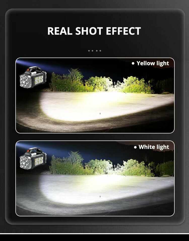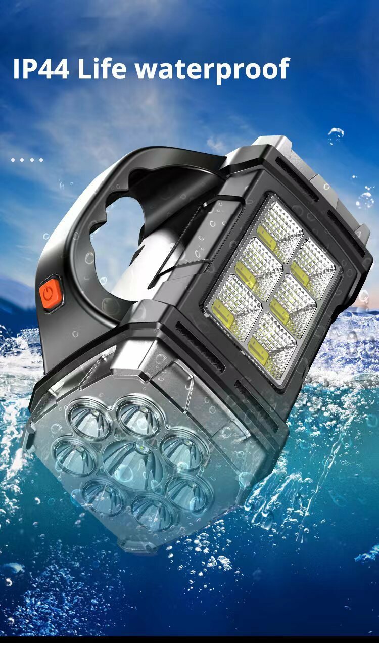 Фонарь светодиодный многофункциональный бликовый прожектор + мощный боковой свет на солнечных батареях + USB зарядка