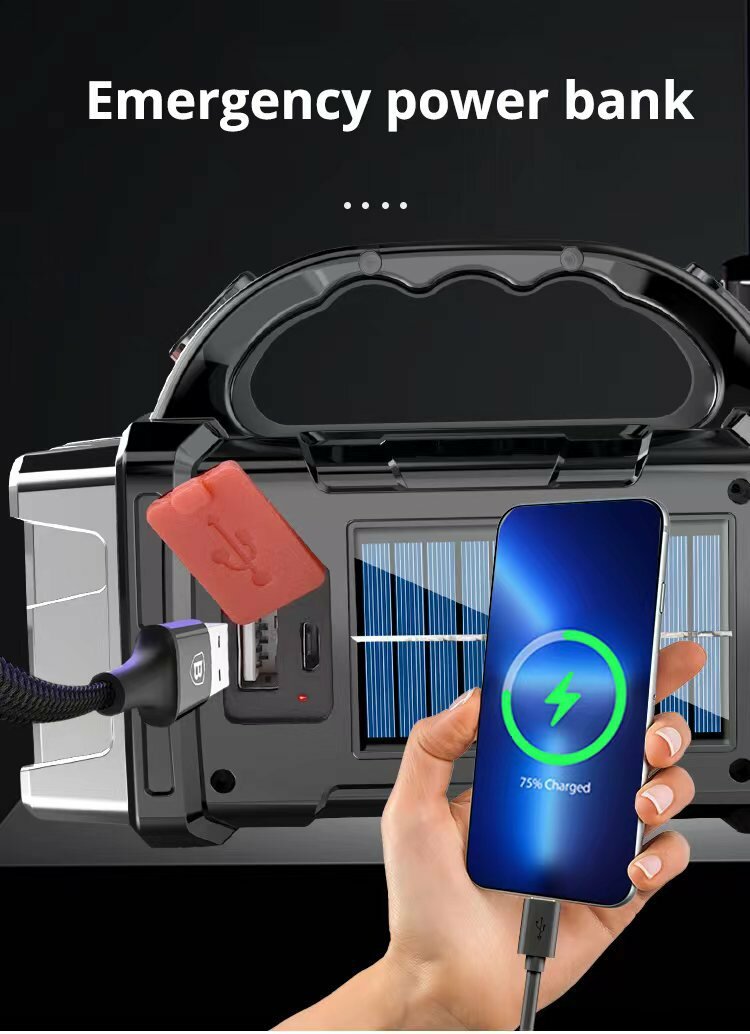 Многофункциональный светодиодный фонарь- прожектор USB-и солнечная зарядка