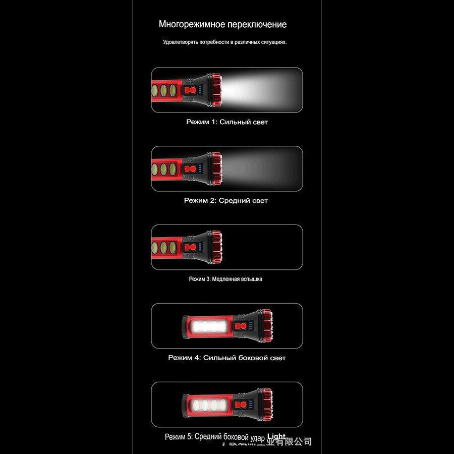 Купить Фонарь светодиодный многофункциональный бликовый прожектор + мощный боковой свет на солнечных батареях + USB зарядка