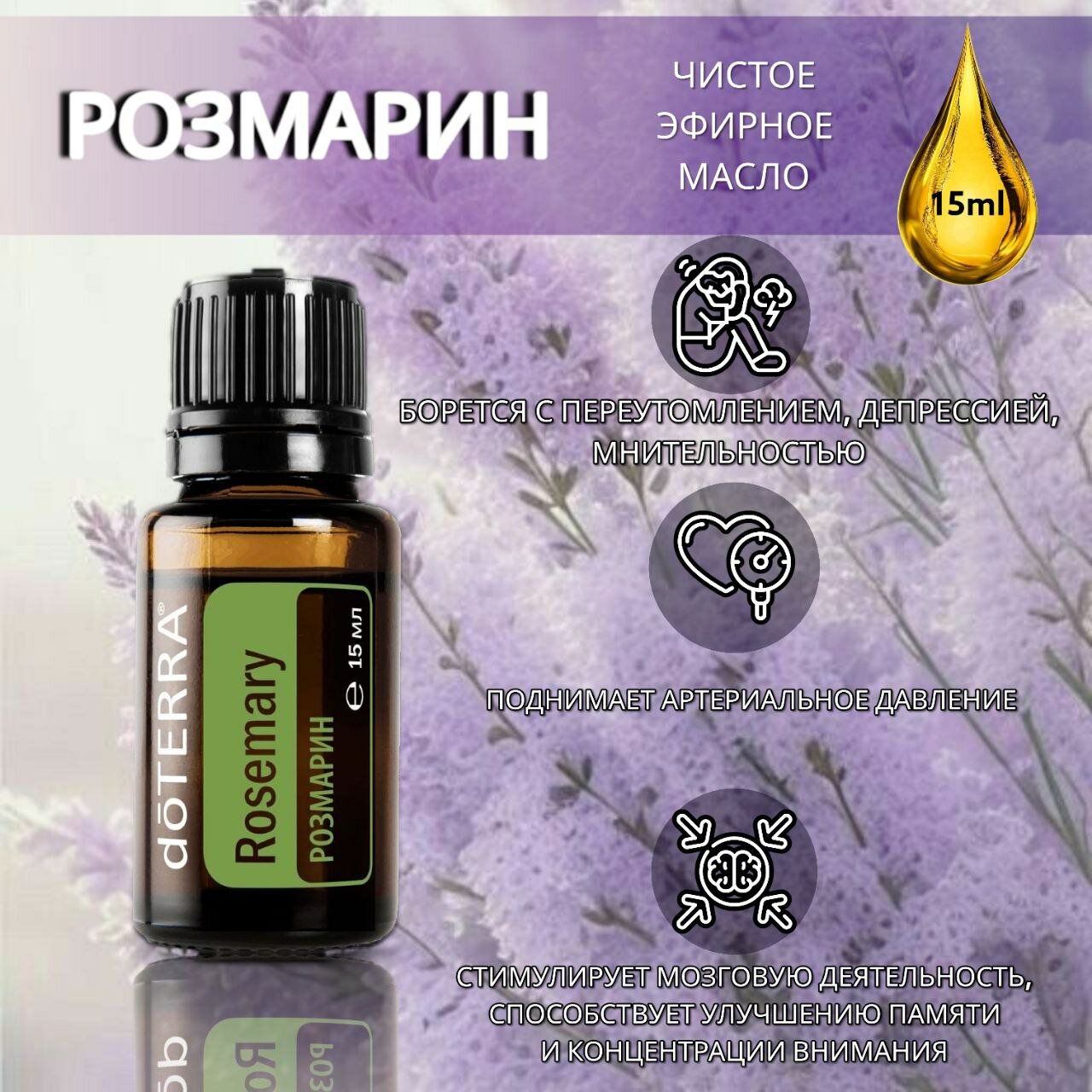 Эфирное масло doTERRA Розмарин, для бани и сауны, дистилляция, 100%, 15мл