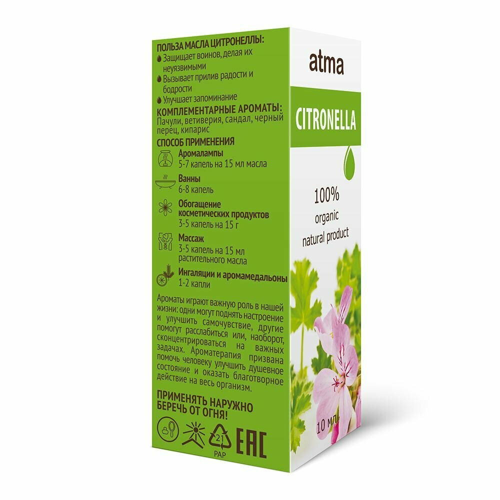 Купить Atma Цитронелла, 10 мл - эфирное масло, 100% натуральное