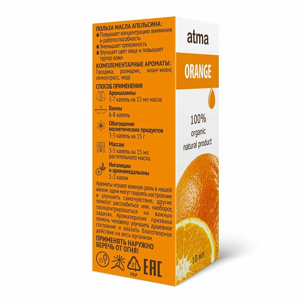Купить Atma Апельсин, 10 мл - эфирное масло, 100% натуральное