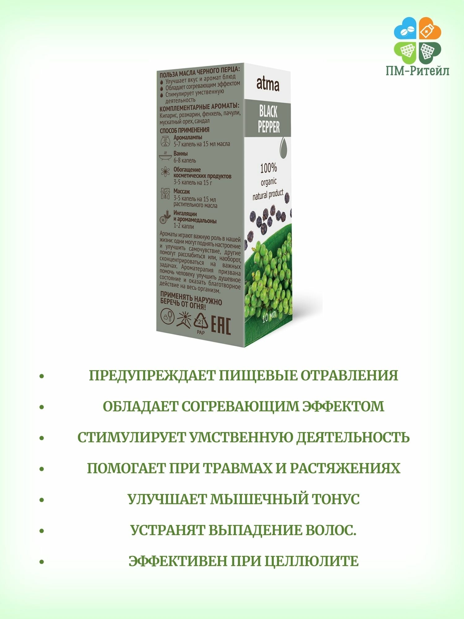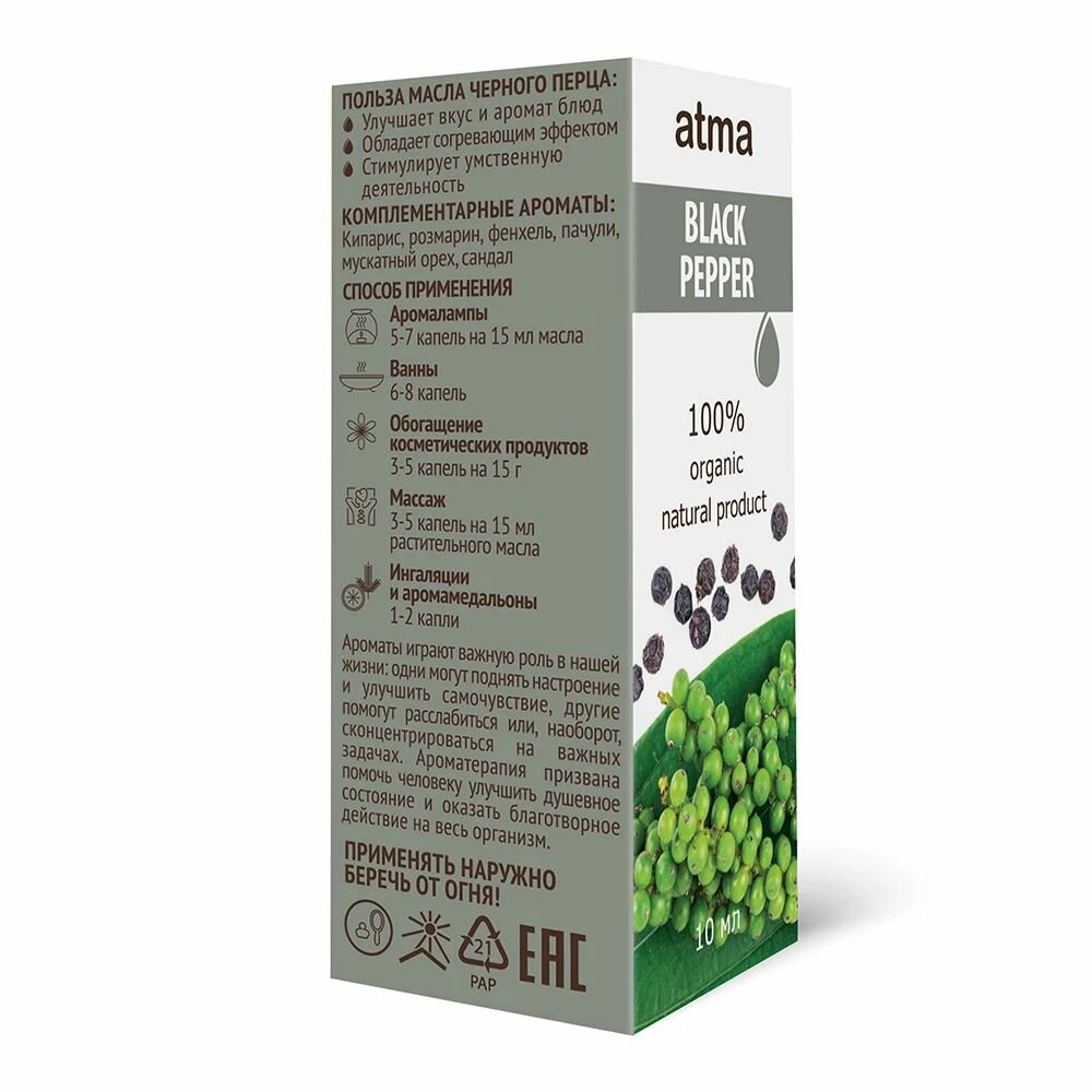 СохранитьAtma Черный перец, 10 мл - эфирное масло, 100% натуральное интересное: