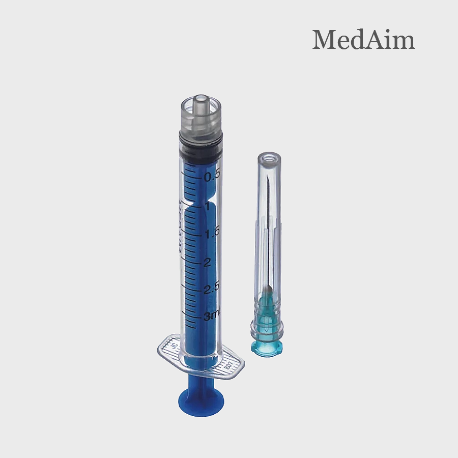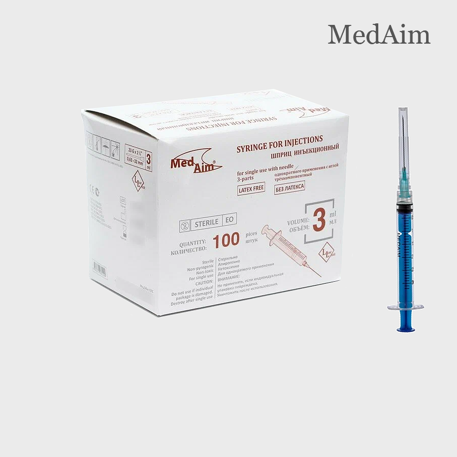 Шприц инъекционный однократного применения 3-х компонентный MedAim 3 мл с иглой 0,63х32мм (23Gх1 1/4") Луер Лок 100 штук