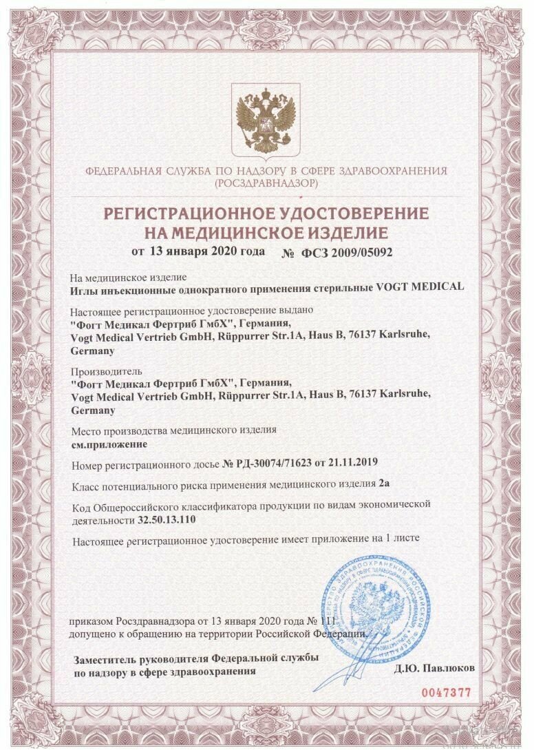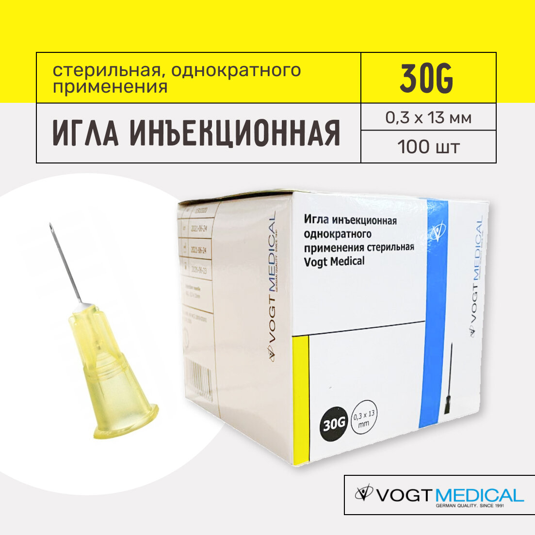 Иглы инъекционные Vogt Medical 30G (0,3х13 мм) одноразовые стерильные, 100 шт интересное: