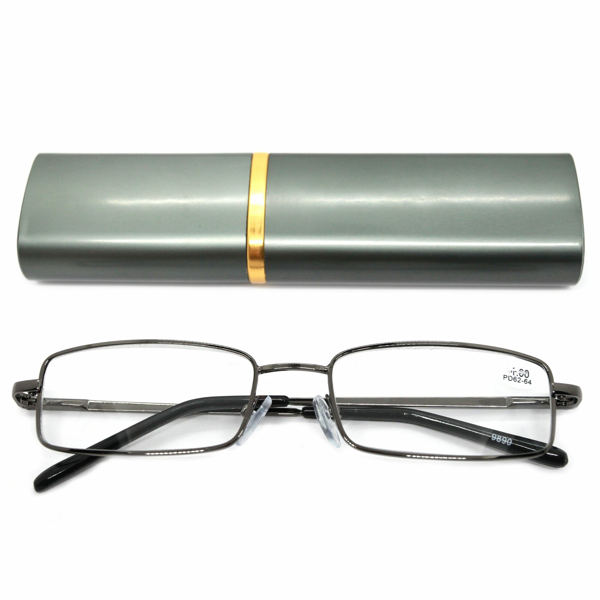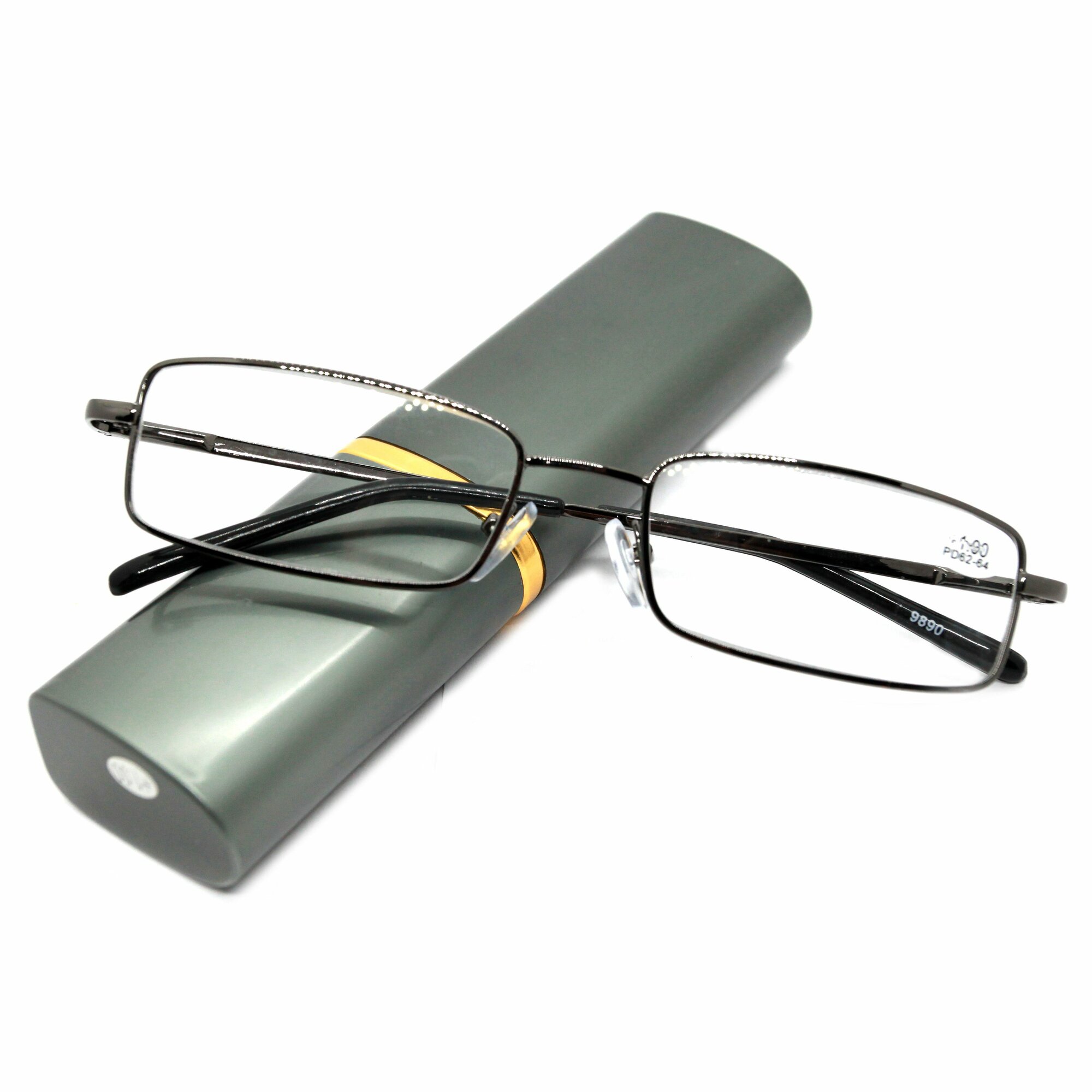 Очки ручка для зрения-чтения в футляре, широкая, цвет серый +1.50