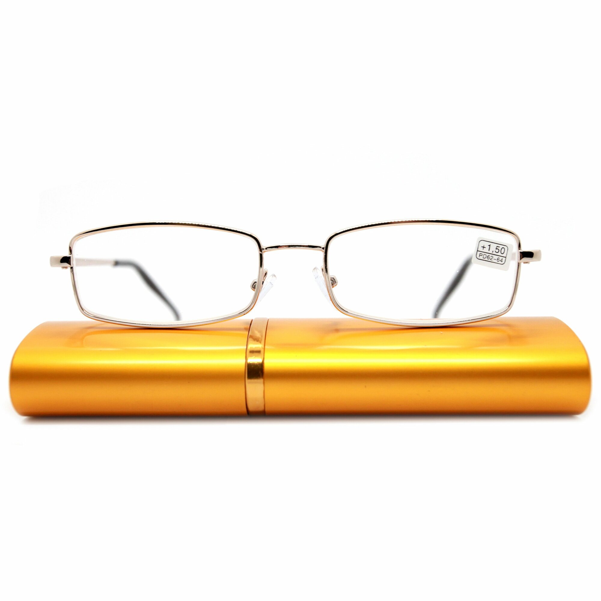 Очки ручка для зрения-чтения в футляре, широкая, цвет золотой +2.50