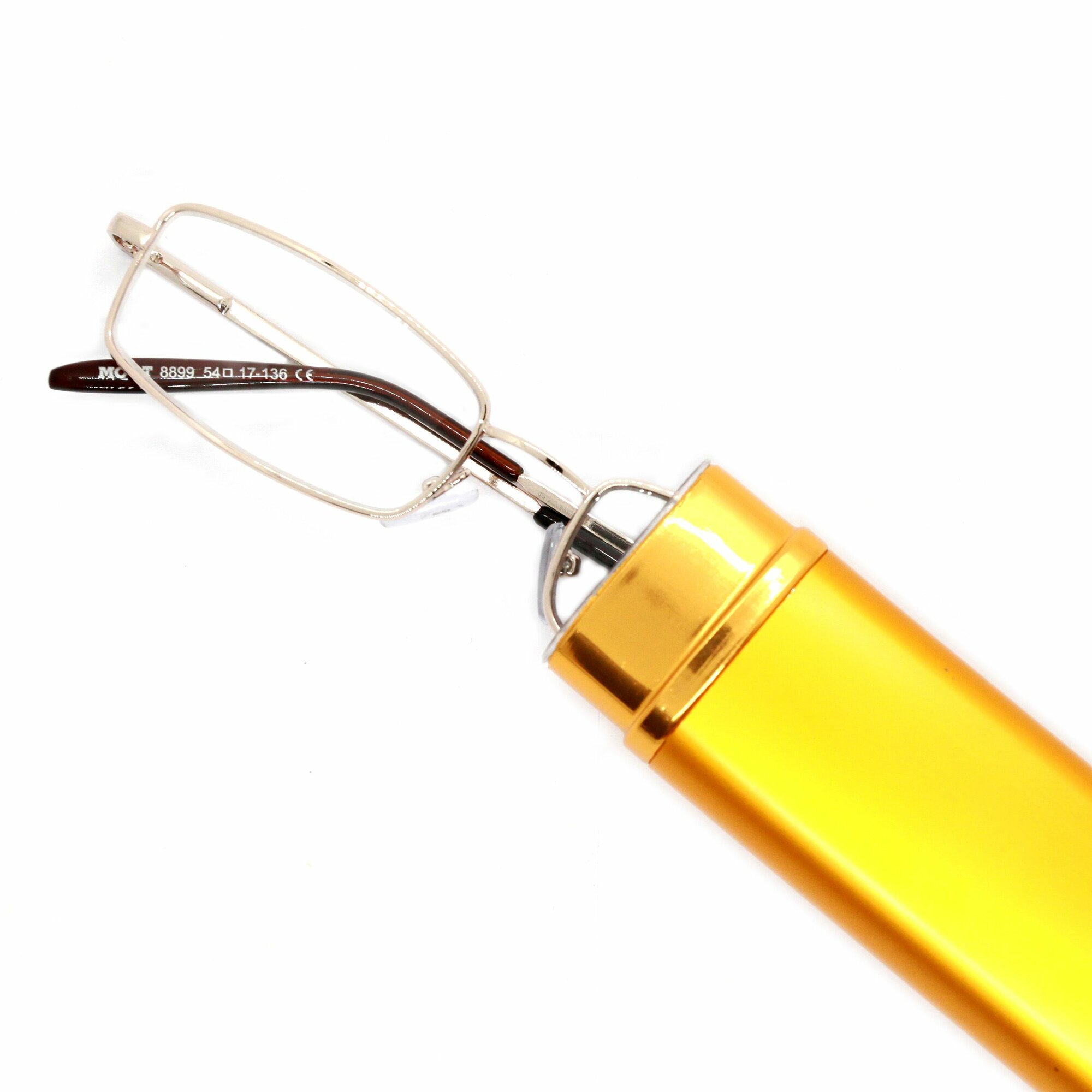 Очки ручка для зрения-чтения в футляре, широкая, цвет золотой +2.50