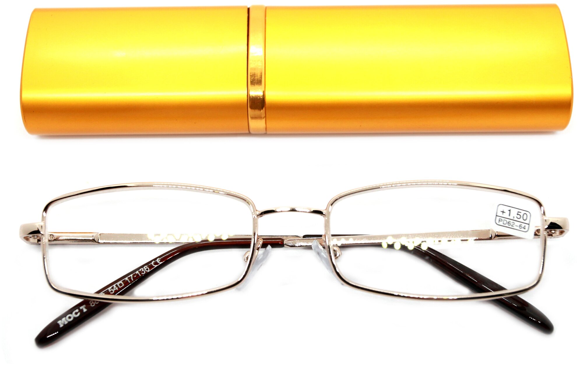 Очки-лектор с футляром, золотистые, для чтения, +1.50, РЦ 62-64